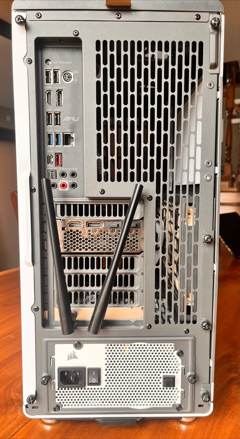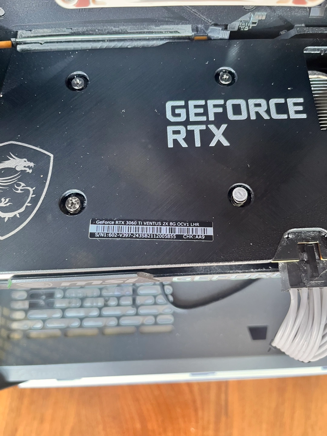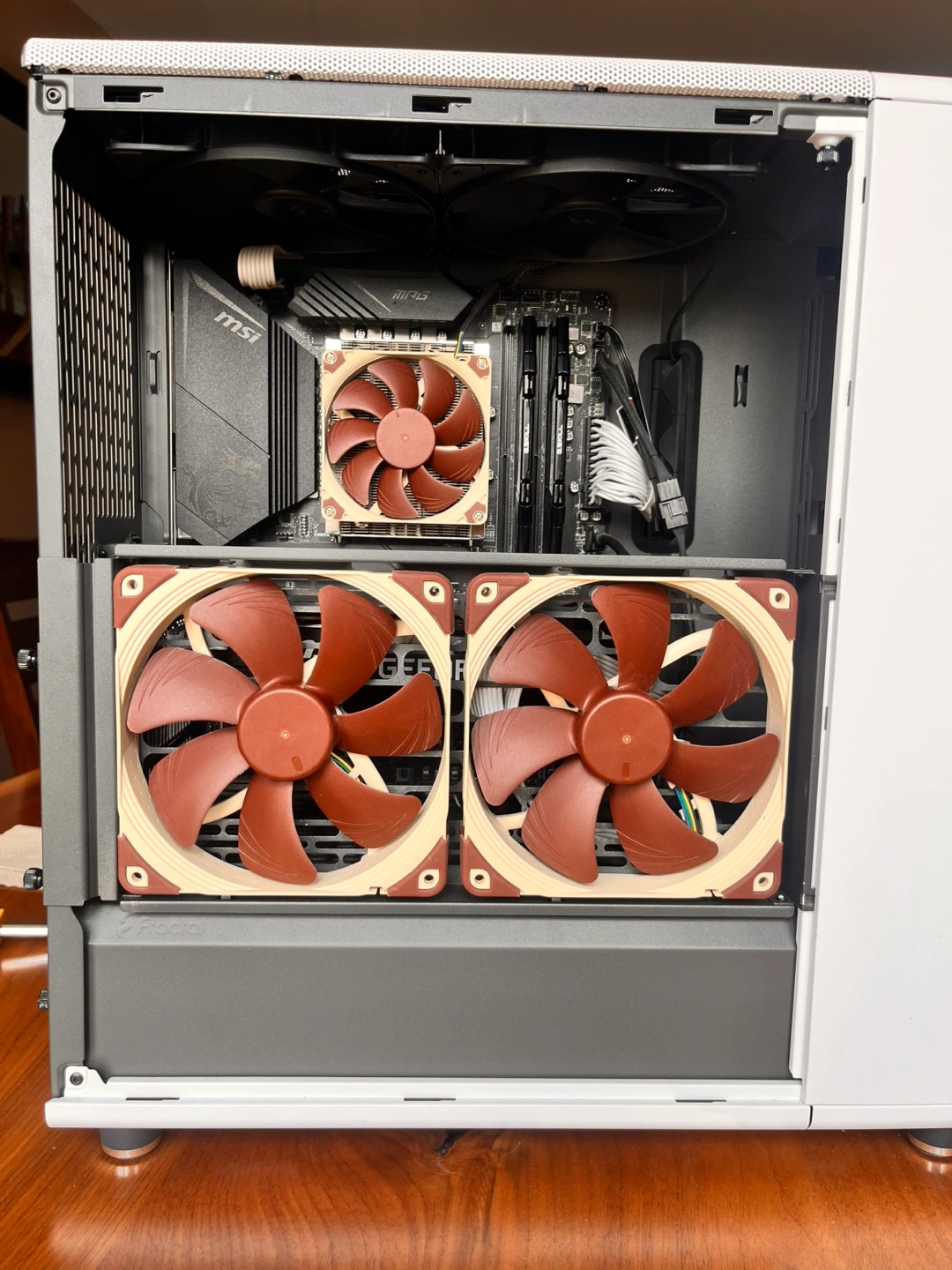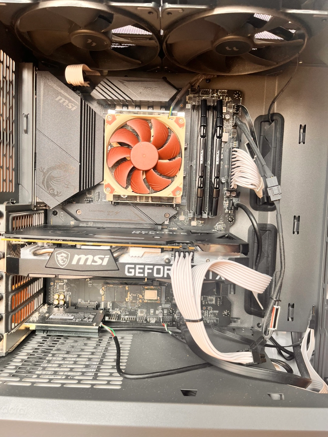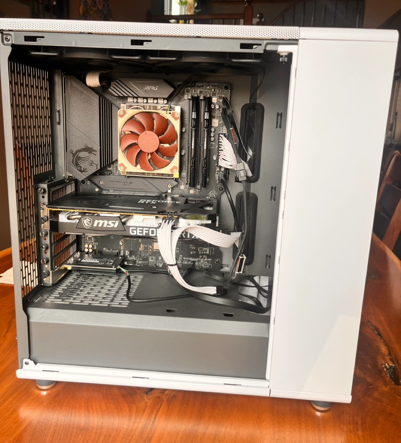 Motherboard: MSI MPG B550 Gaming Plus CPU: AMD 3600 CPU Cooler: Noctua NH-L9a RAM: G.Skill Ripjaws 32GB 3200mhz GPU: MSI VENTUS 2x 3060 ti LHR 8 GB PSU: Corsair CX750F RGB Case: Fractal North White, mesh side Wifi/Bluetooth Card: Tp-link AX3000 (Wifi 6, Bluetooth 5.0) SSD: 1 TB WD Blue SN570 Case Fans: 2 fractal on top, 2 Noctua NF-A14 140mm on side - Minor scuffs on side panel - Have original case box for transport - Have motherboard, cpu, cpu cooler, gpu, fan, wifi card original boxes if wanted - Extra PSU cables in motherboard box