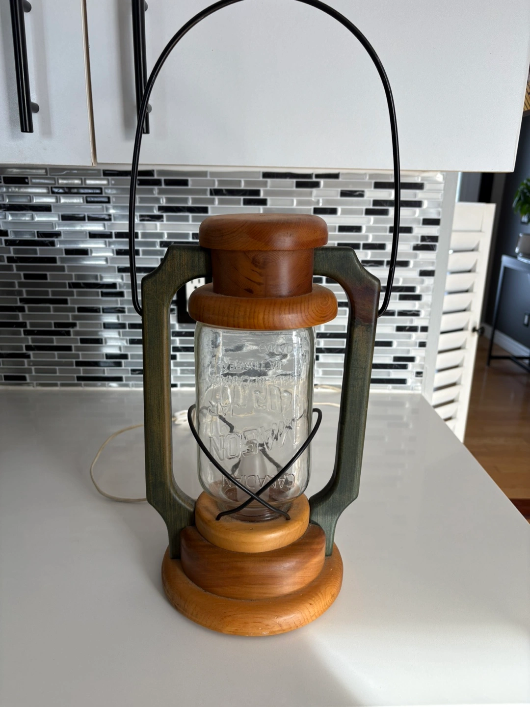 Custom made from a large mason jar and wood. PICK UP/DELIVERY - FENELON or LINDSAY
