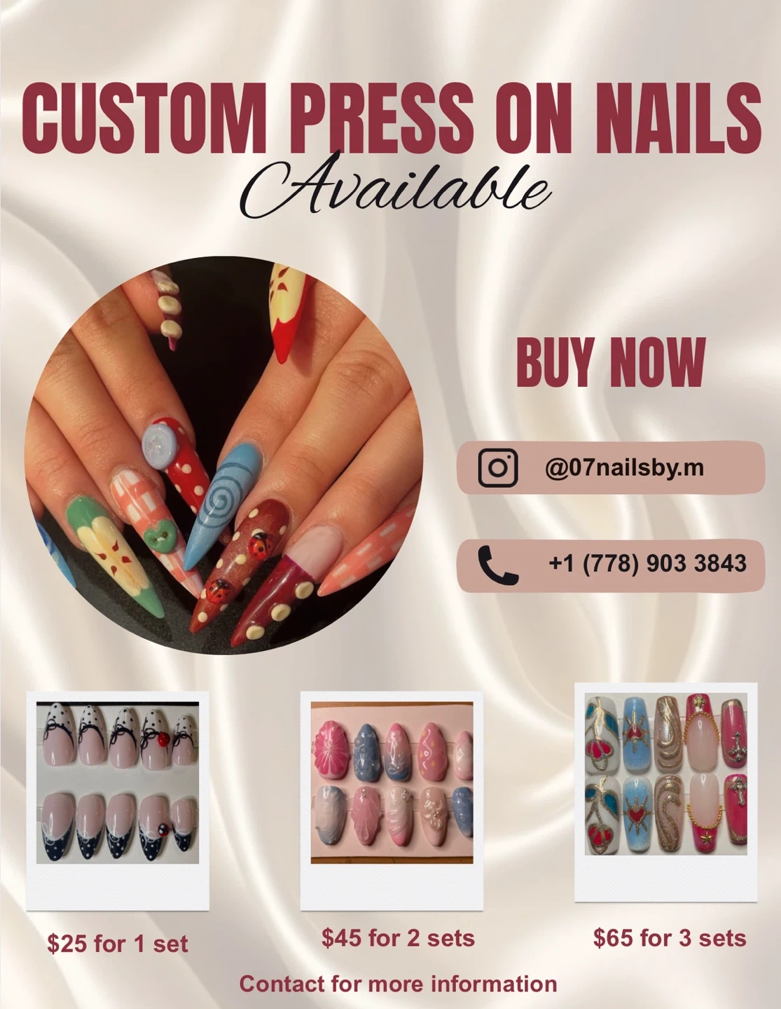 Buy a set of custom press on nails, perfect for any occasion! nail glue not included.