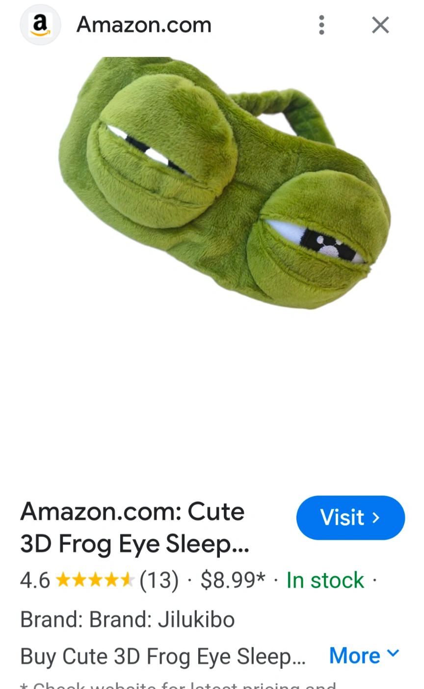 New eye mask. Features a 3D frog design. Soft and comfortable. Perfect for blocking out light. New unopened. Cash or e-transfer only. Pick/meet up options: - Jane and Eglinton or - Dovercourt and Dundas West (Monday to Friday 8am to 1pm) - High Park or Keele station Monday to Friday 2:45pm to 3pm