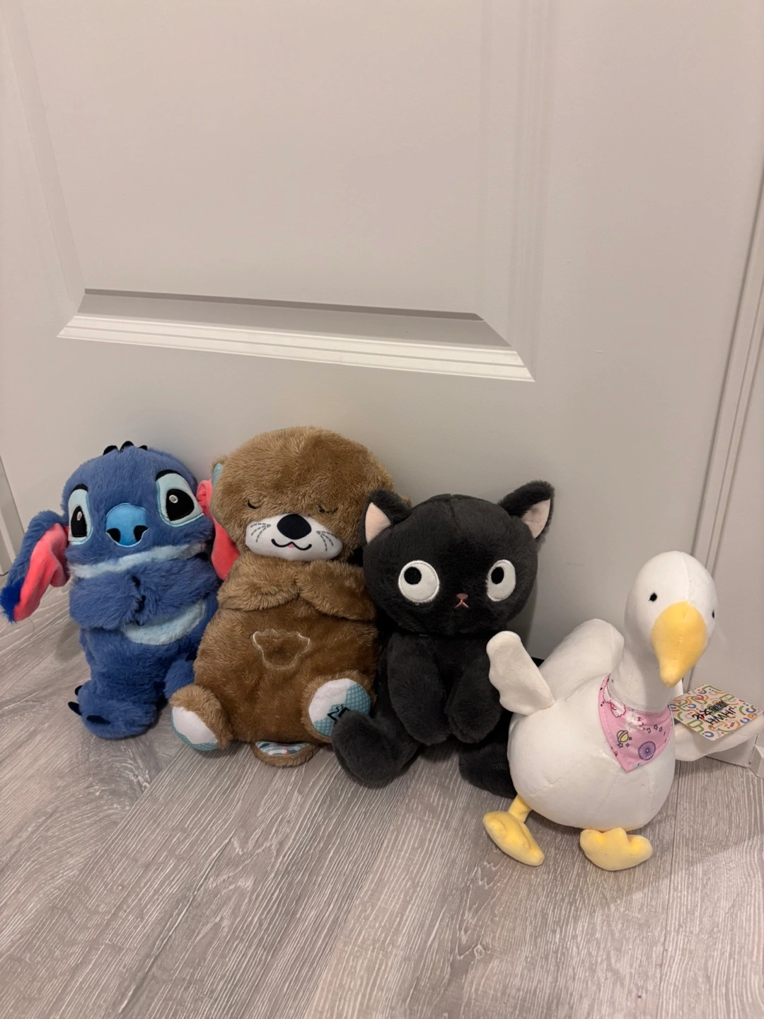 Soft and cuddly. Features a gentle night light. Perfect for bedtime. duck - $5 cat - $5 otter - $10 (breathing doll) stitch - $10 (breathing doll) buy all - $20