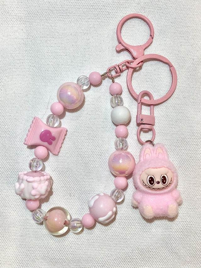 Brand new labubu style keychain (pink) $15. More colours available (Pink, Blue, Green, Purple, Yellow, Orange, Brown). Check out my other listings!