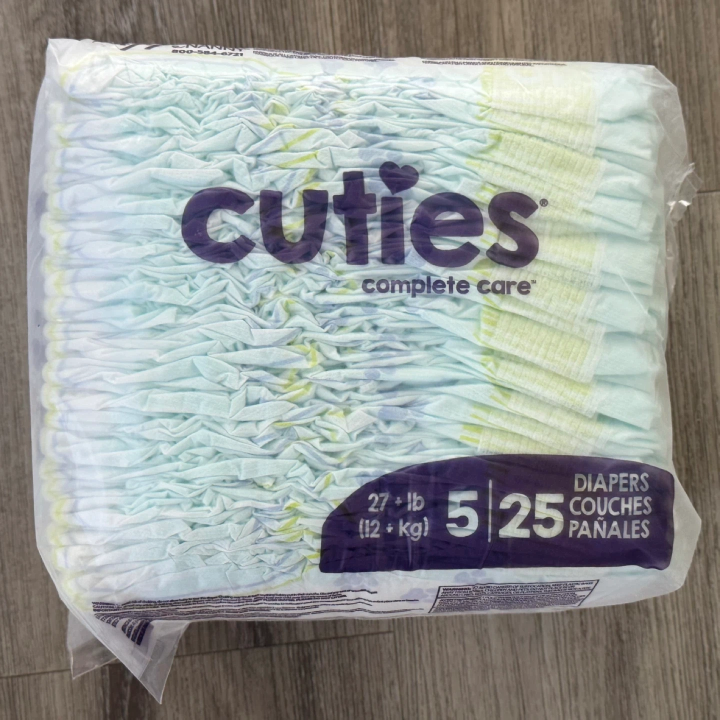 Selling a package of Cuties Complete Care diapers! These are size 27+ lb (12+ kg), and the package contains 25 diapers
