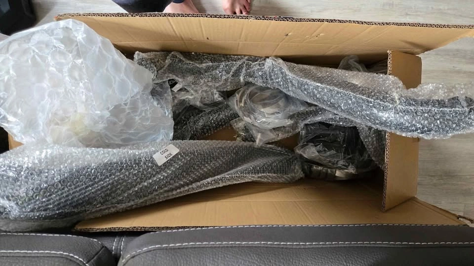 Brand new CVF Titan V2 intercooler for a 2016 F150 3.5 EcoBoost, also with CVF aluminum intercooler charge pipe kit and a Turbosmart Vee Port.