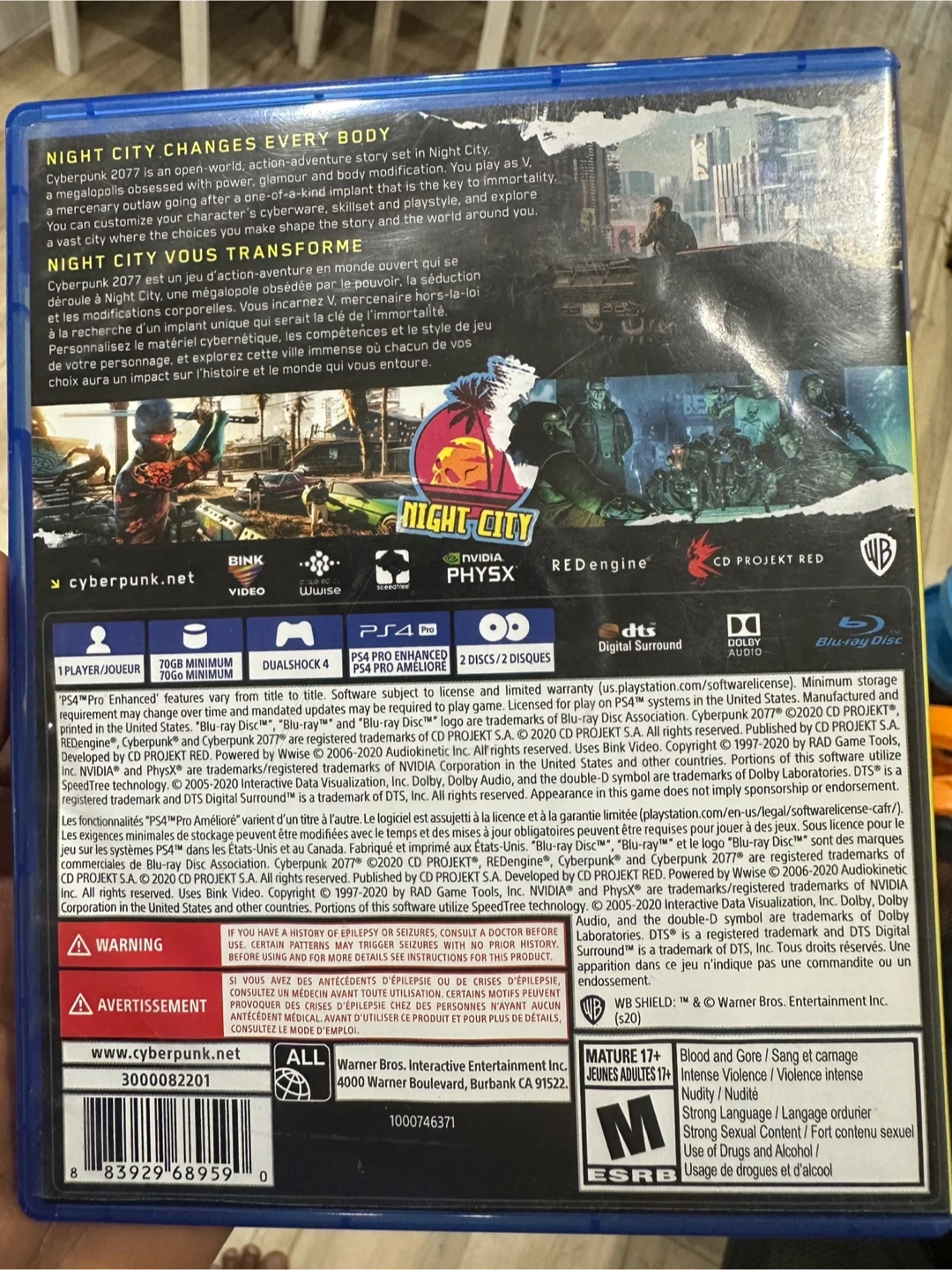 Cyberpunk 2077 for the PlayStation 4! Brilliant open-world, action-adventure story set in Night City. Great game Both cds are clean with no scratches. Pickup