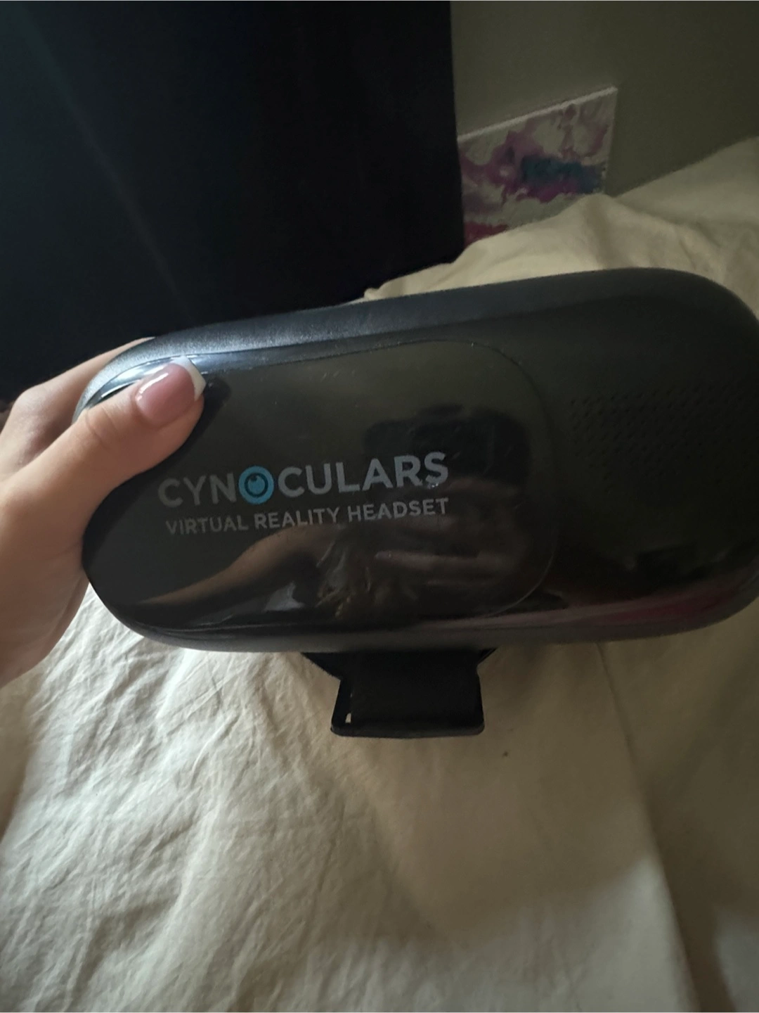 Selling a Cynoculars virtual reality headset! It's in great shape and ready for a new home. Slide the phone cartridge out of the headset to get started. Center the phone cartridge as much as possible. Then, download the VR App. Some apps may require you to follow instructions. After that, slide the phone cartridge back into the headset