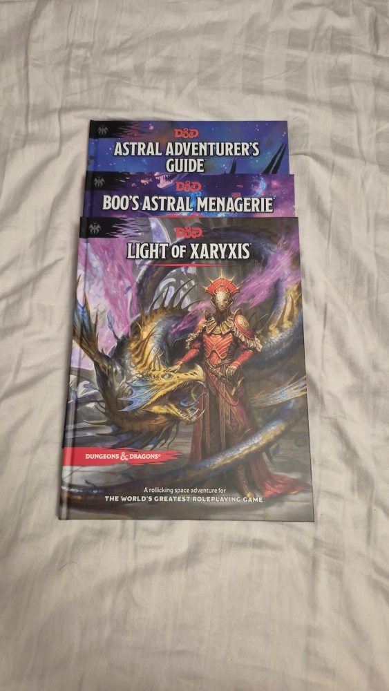 Selling a set of Dungeons & Dragons books: - Astral Adventurer's Guide - Boo's Astral Menagerie - Light of Xaryxis A great set for any D&D enthusiast looking for a rollicking space adventure!