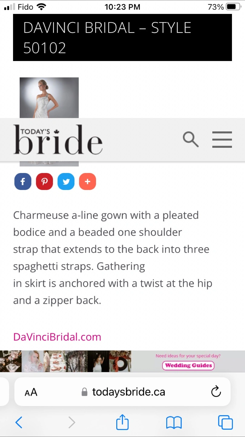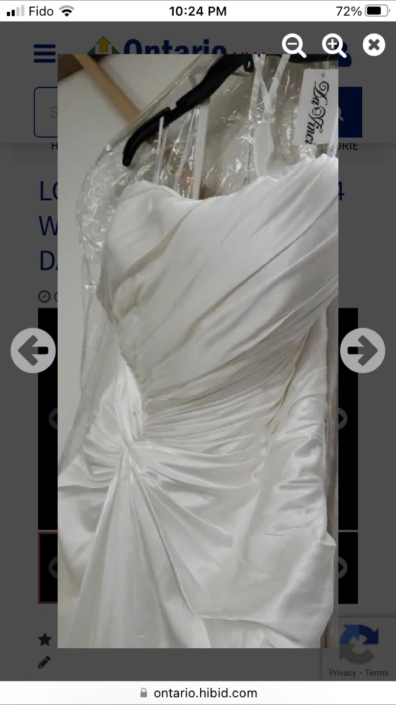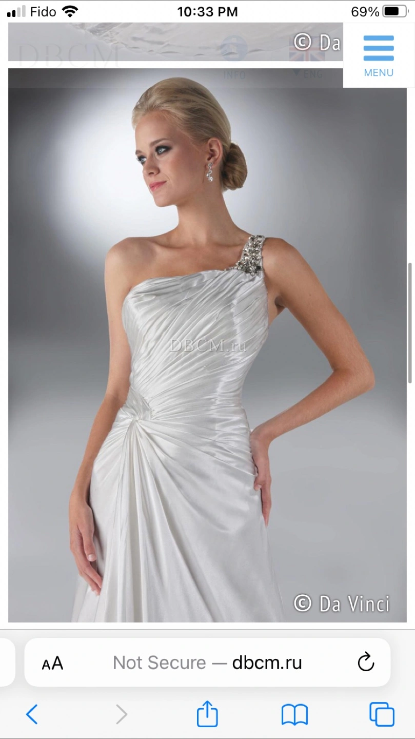 Selling a Da Vinci 50102 wedding dress. It's a beautiful, elegant gown perfect for your special day! The dress features a one-shoulder design and a flowing skirt. If you're looking for a classic and timeless style, this could be the one