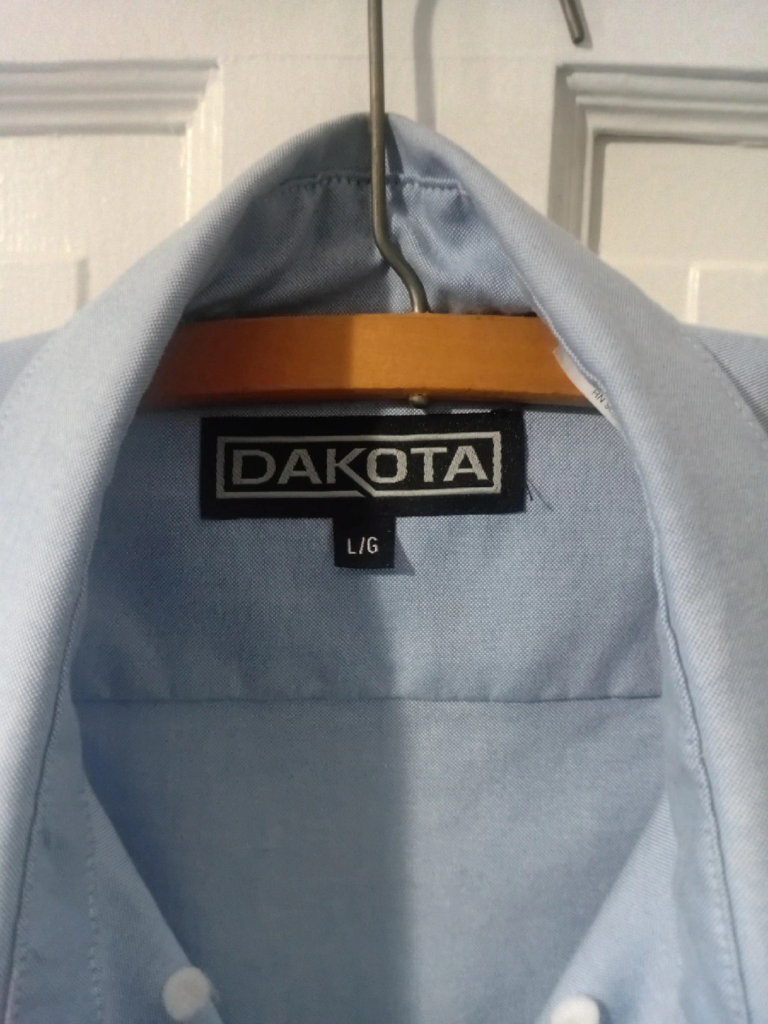 Here's a light blue long-sleeve shirt from Dakota! It's a size L/G and in great shape. Perfect for work or casual wear