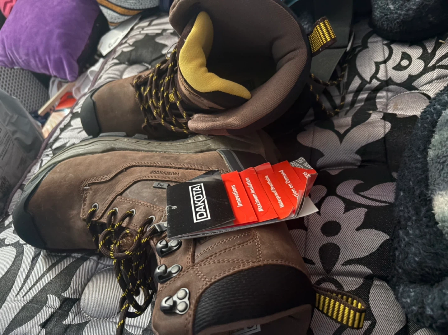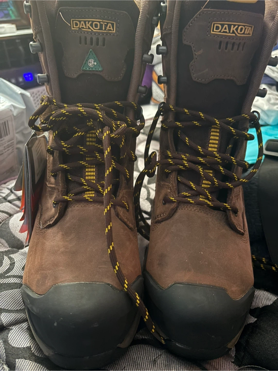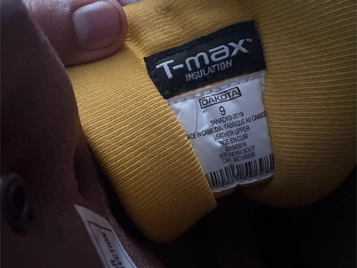Selling a pair of Dakota work boots with T-Max insulation! These are size 9 and have a durable leather upper. They also feature Tarantula Traction on Demand for excellent grip. Great for any job site!