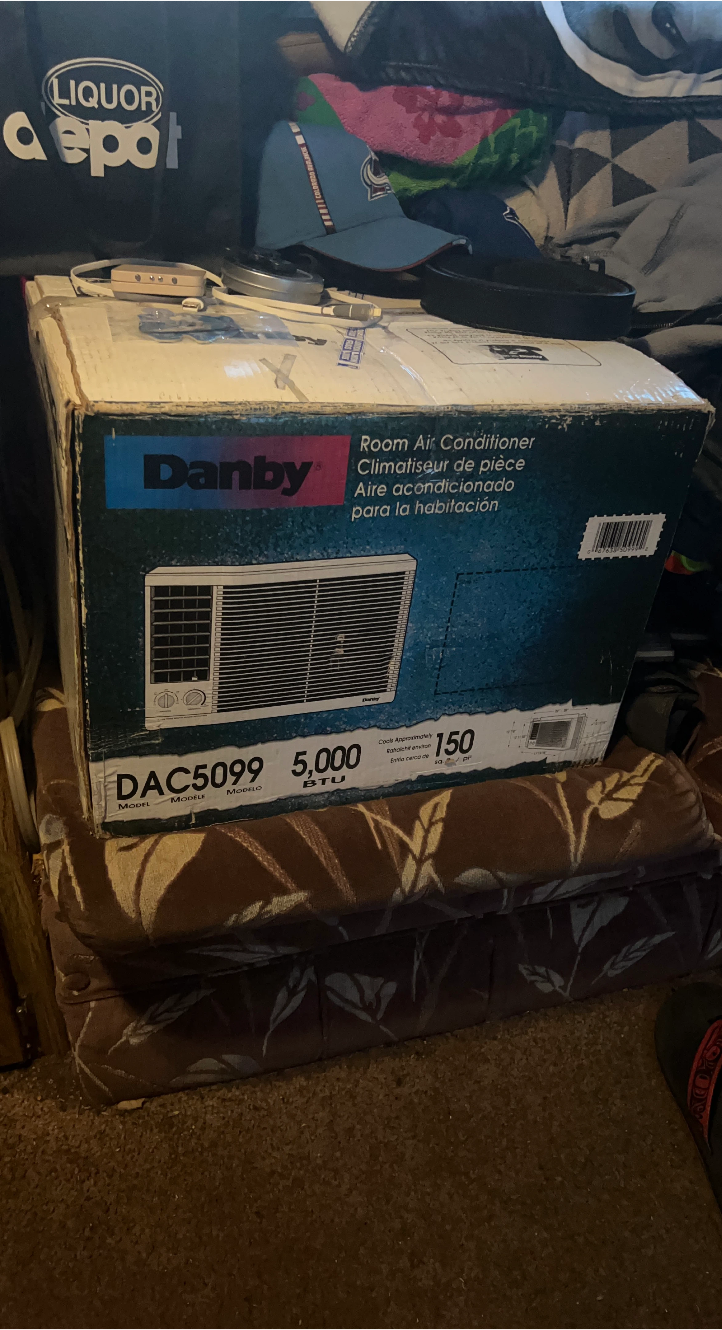 Selling a Danby room air conditioner, model DAC5099. It's a 5,000 BTU unit that can cool approximately 150 square feet. Comes in the original box!