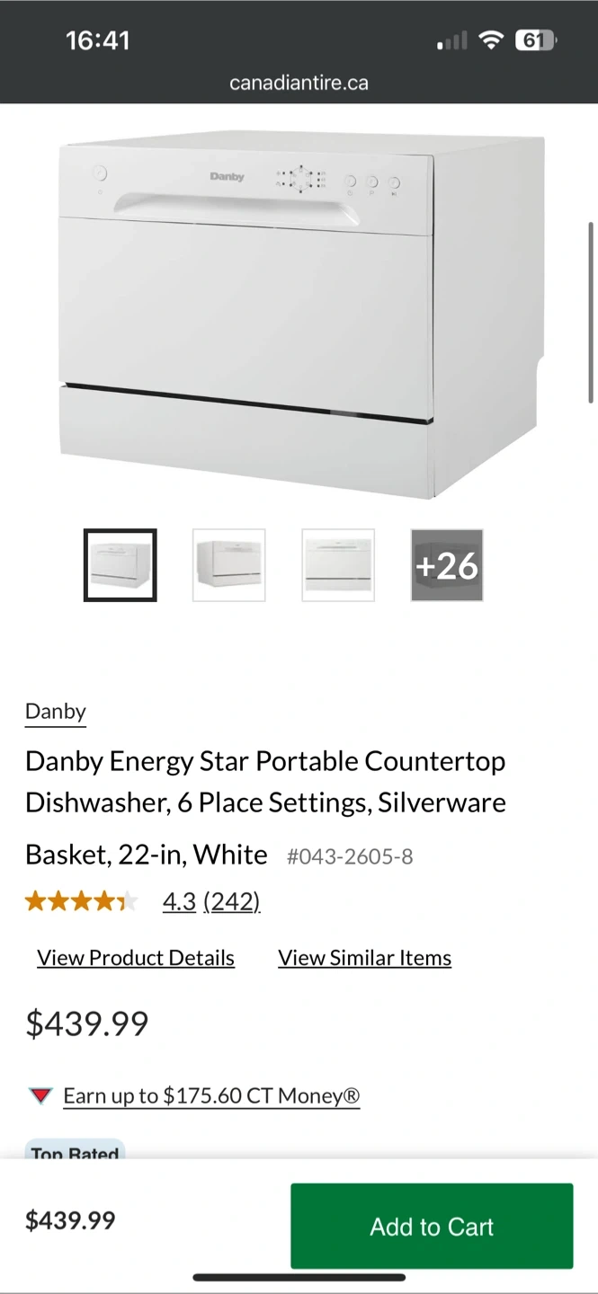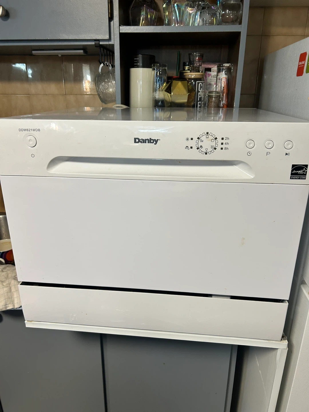 Selling a Danby Energy Star portable countertop dishwasher in white. It has 6 place settings and a silverware basket. It's 22 inches wide. Originally bought for $439.99 This appliance is a life saver for anyone without a dishwasher!!
