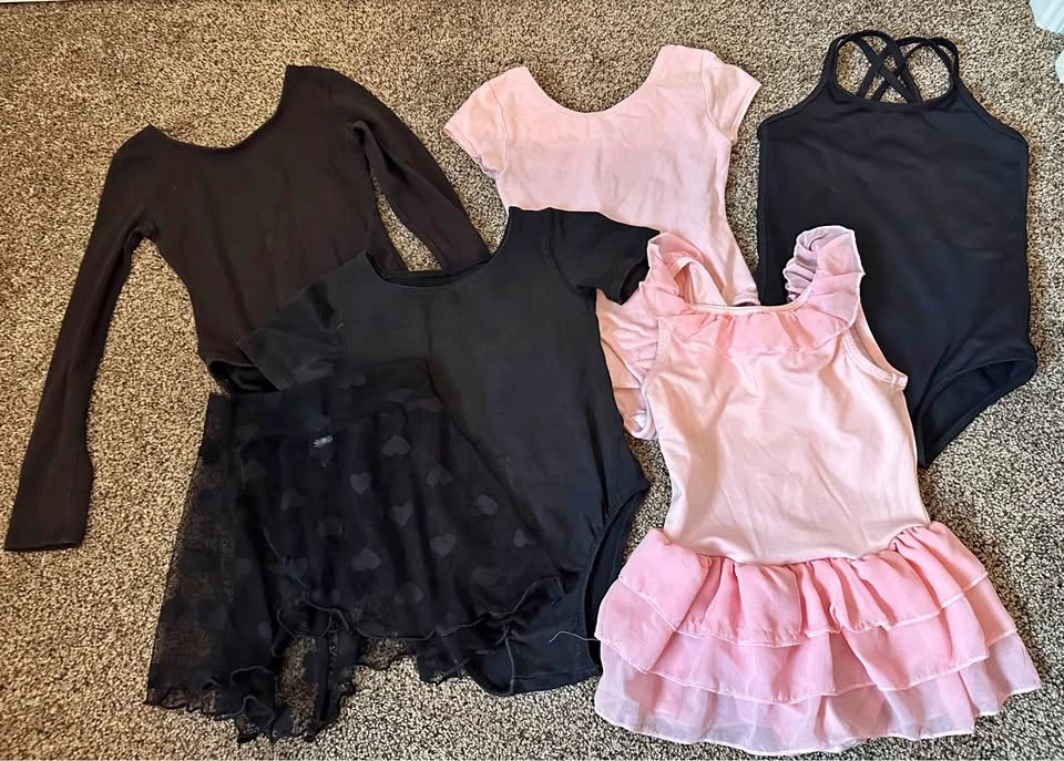 Good to excellent condition dance lot consisting of 4 bodysuits, 1 bodysuit with attached skirt, 1 sheer skirt, two pairs light pink tights. Pickup near Victoria Ave and Cedar Dr in Port Coquitlam or possible meetup at Meadowtown in Pitt Meadows