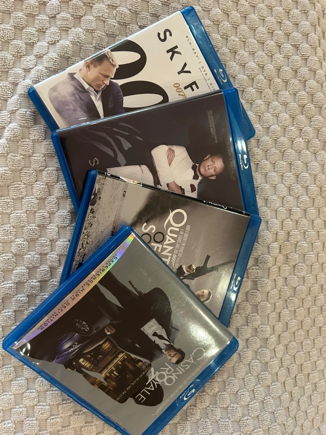 Selling a collection of James Bond 007 movies on Blu-ray! Includes Casino Royale, Quantum of Solace, and Skyfall. Perfect for any Bond fan who wants to experience these films in high definition