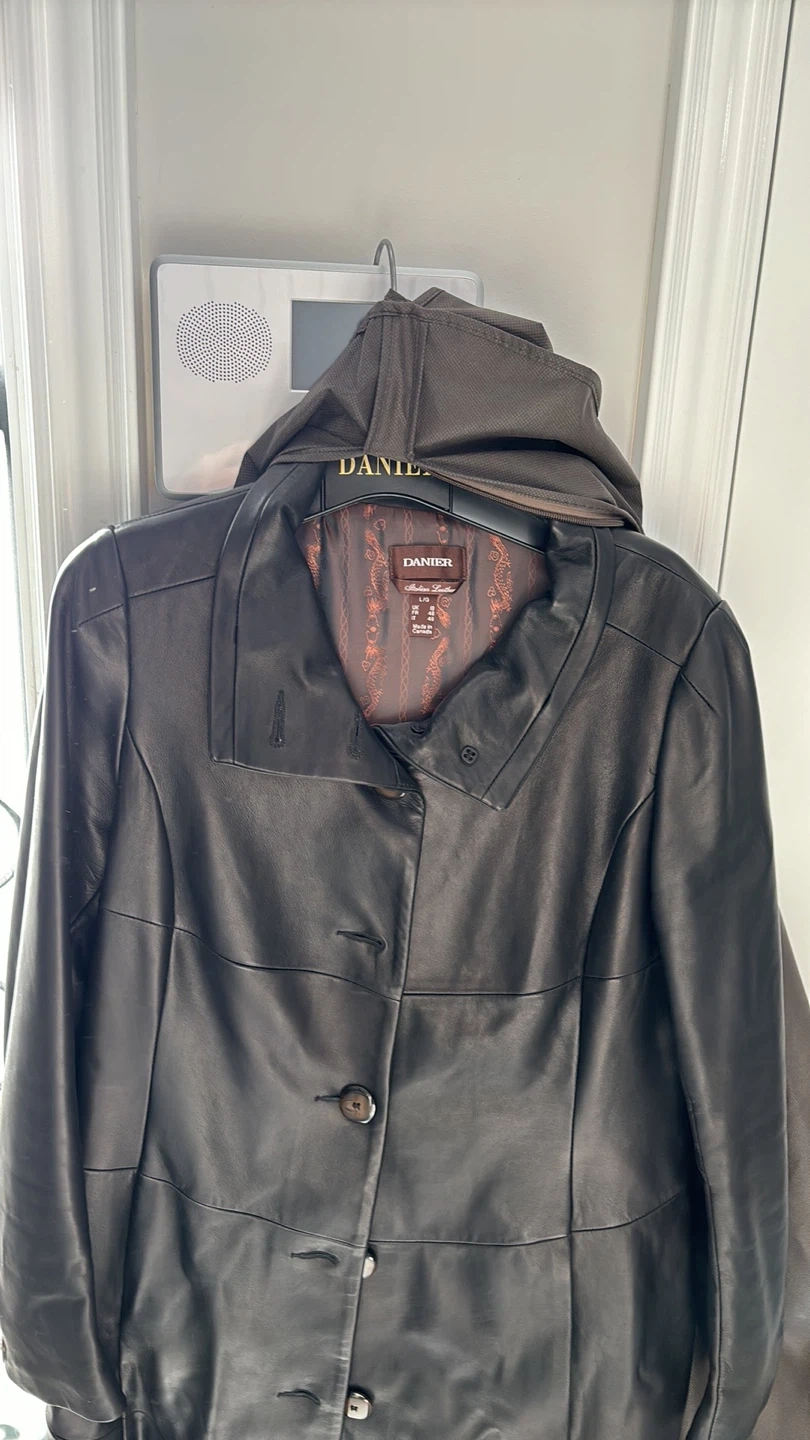 Selling a Danier brand leather coat It's a stylish piece, perfect for cooler weather. The coat is in great condition and ready for a new home!
