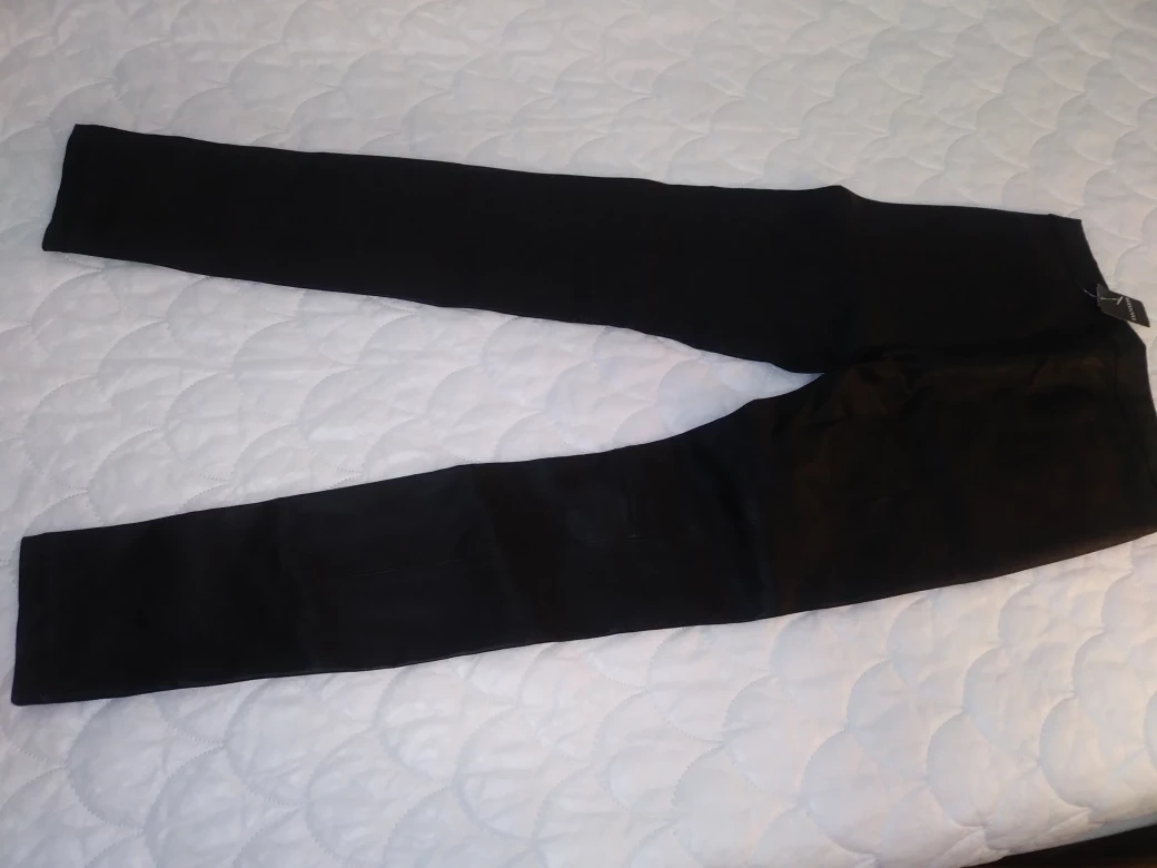 Women's black leather pants. Size 8. Slim fit. Brand new Stylish design features. Look of leggings