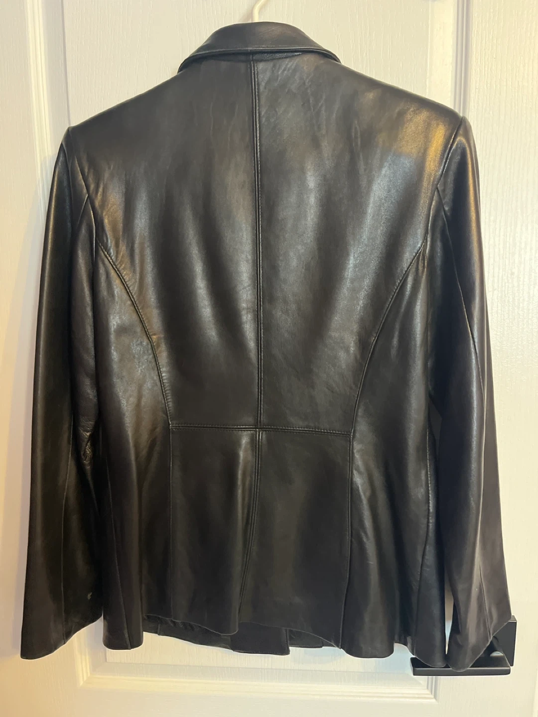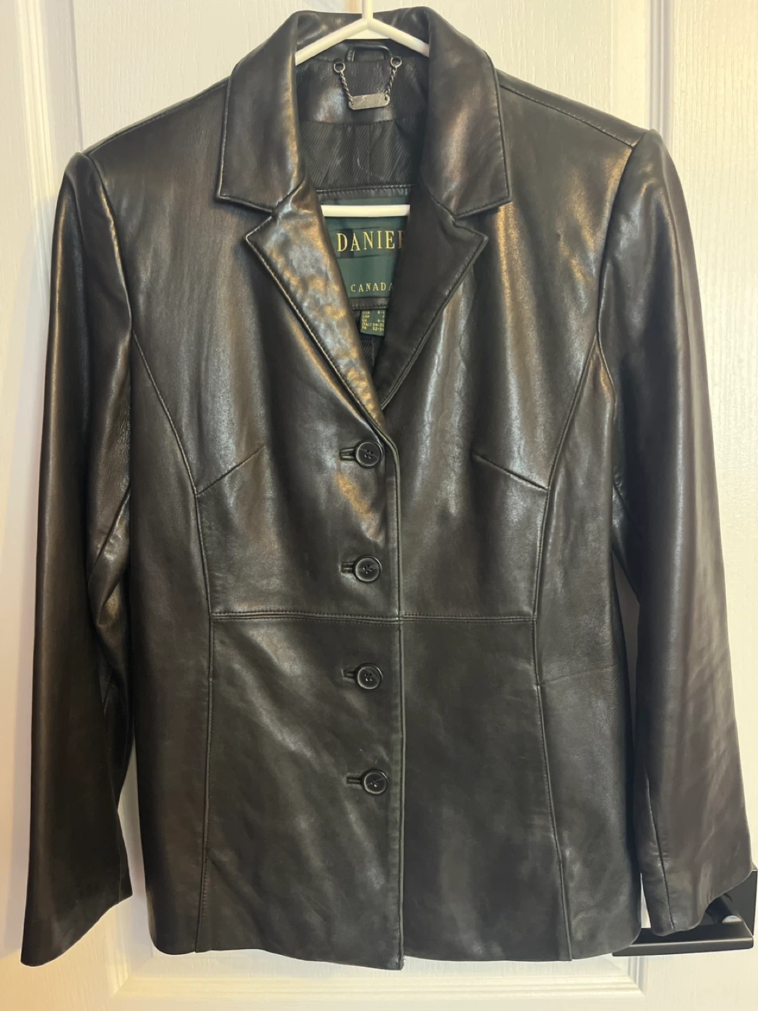 Selling a classic black leather blazer from Danier Canada. It's in great condition and a versatile piece for any wardrobe. The size is a US 4-6. Pet and smoke free home. Pick up in Stittsville.