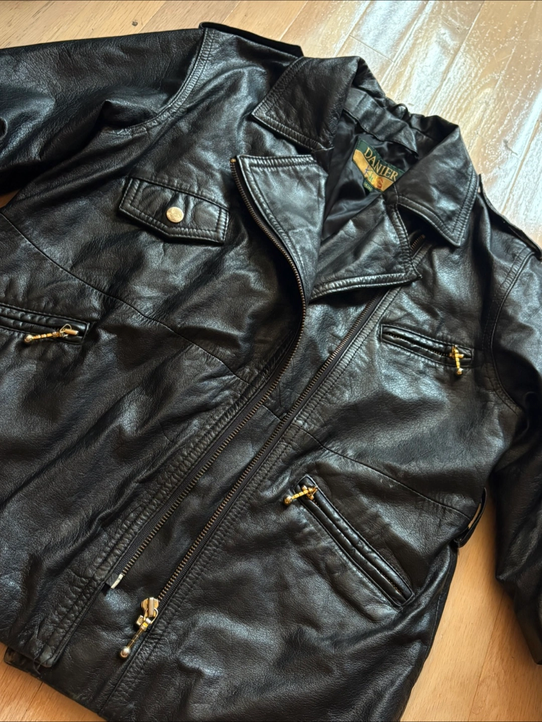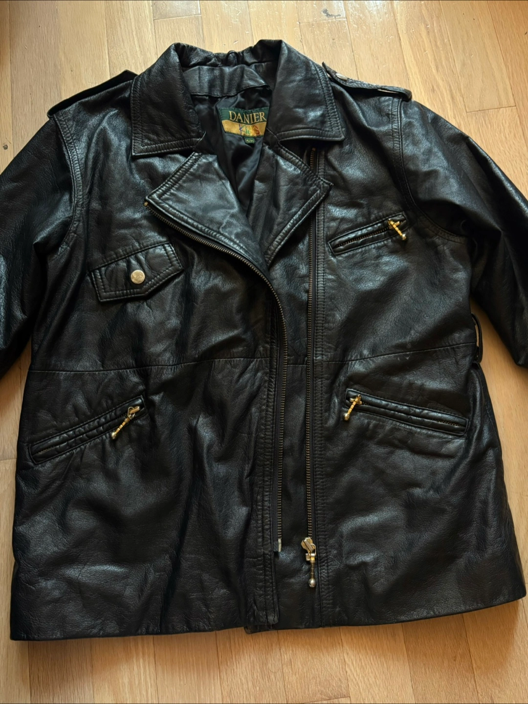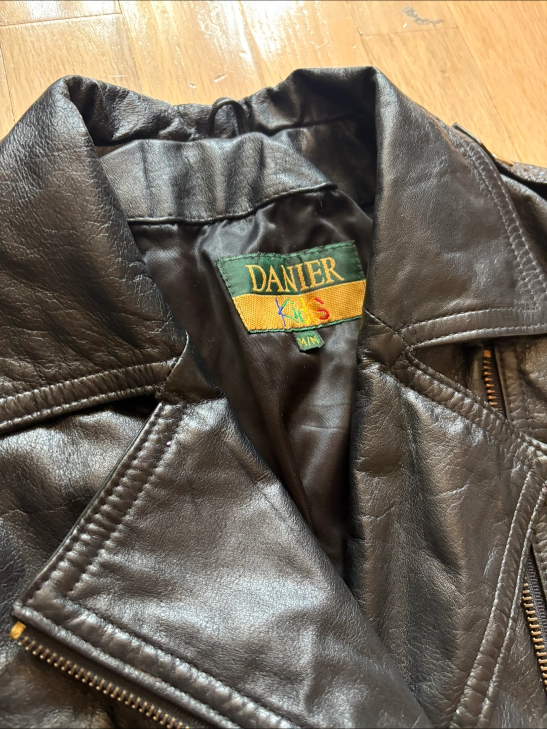 Here's a stylish Danier Kids black leather jacket! It's in great condition and perfect for adding a bit of edge to any outfit. The size is M/M kids.