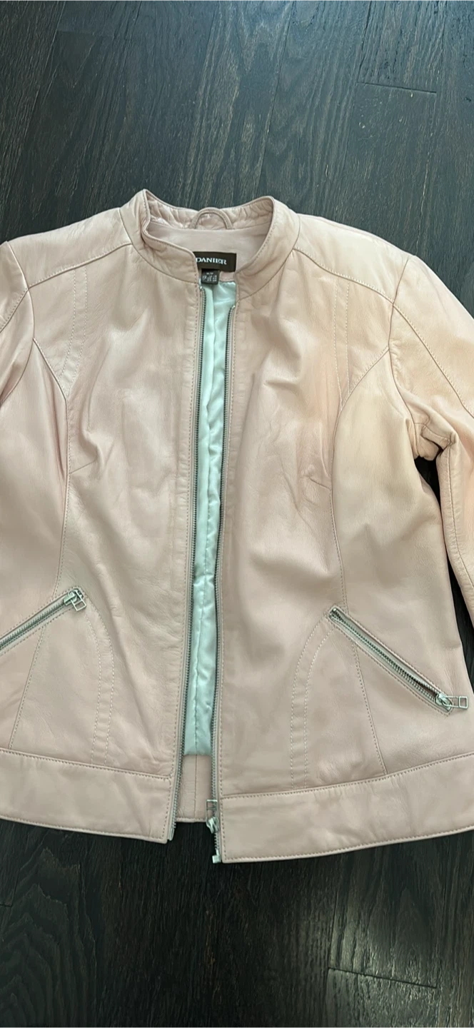 Selling a lovely Danier leather jacket in a soft pink colour. It's in great condition and has a stylish, fitted design. Perfect for adding a touch of elegance to any outfit!