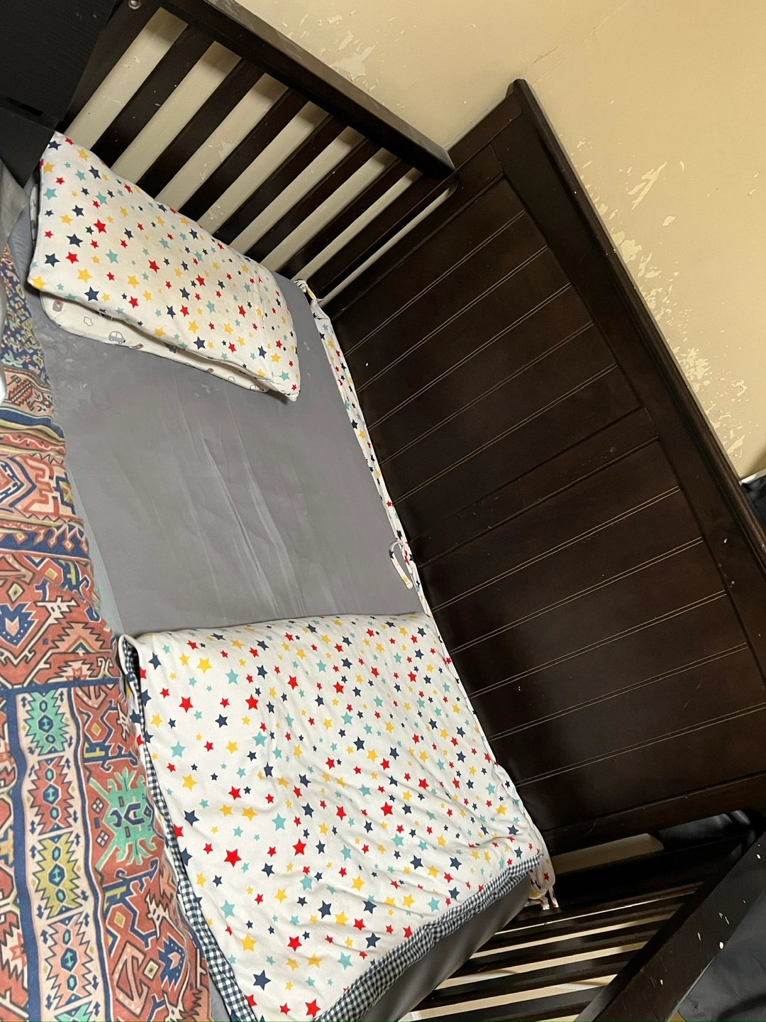 Selling a dark brown crib that's in good condition. Mattress is not included. Perfect for your little one's nursery!