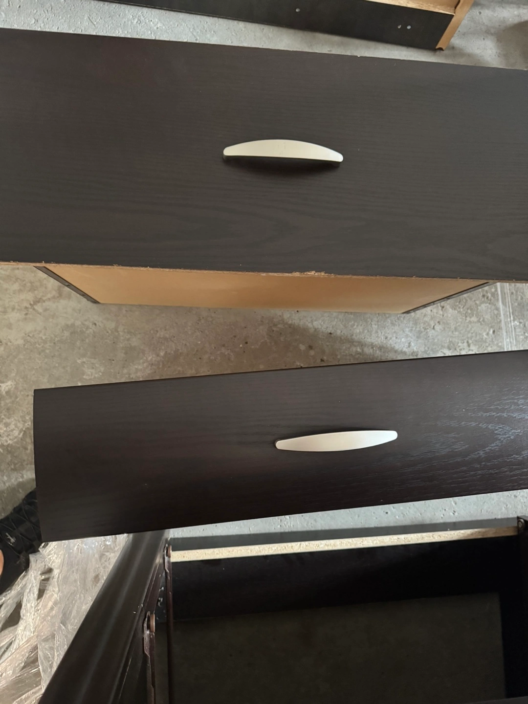 Selling a set of dresser drawers. They're a dark brown colour with silver handles. They are still wrapped in plastic wrap. Cash only $250 or best offer, need gone asap! Purchased from Leon’s This dresser has some scratches, through out the unit. Please see pics for more details. Comes with 4 deep drawers, and 2 smaller ones and mirror. One of the drawers does have a crack in the corner. It still has a lot life !