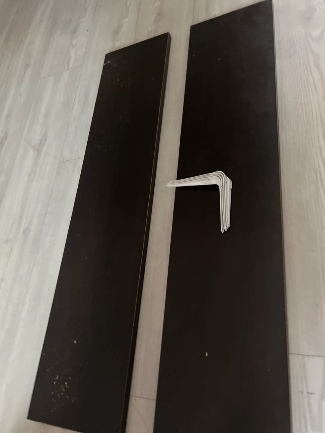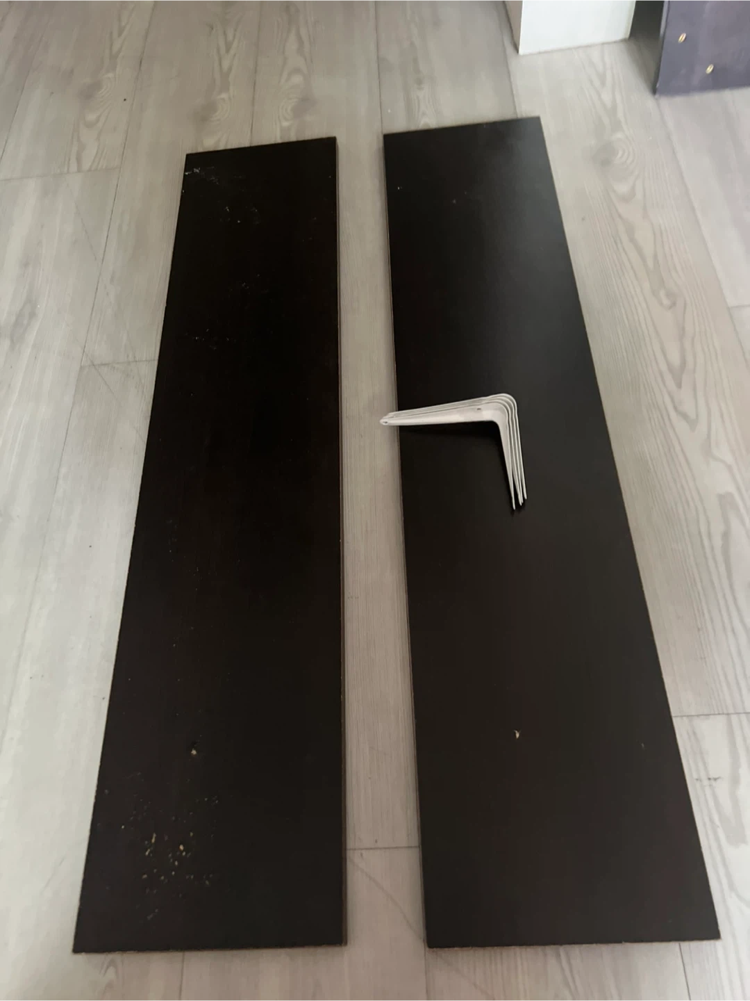 Selling some dark brown shelves. They come with the brackets for easy mounting. They're in good condition and ready to add some storage to your space Picture reduce space in house to put all kind of picture frame or even flowers 10 each or take the 3 wood for 20 Pick up or delivery for free