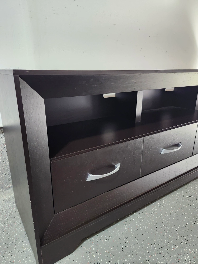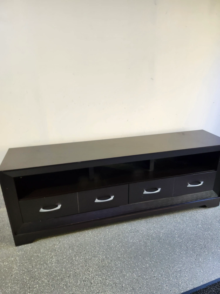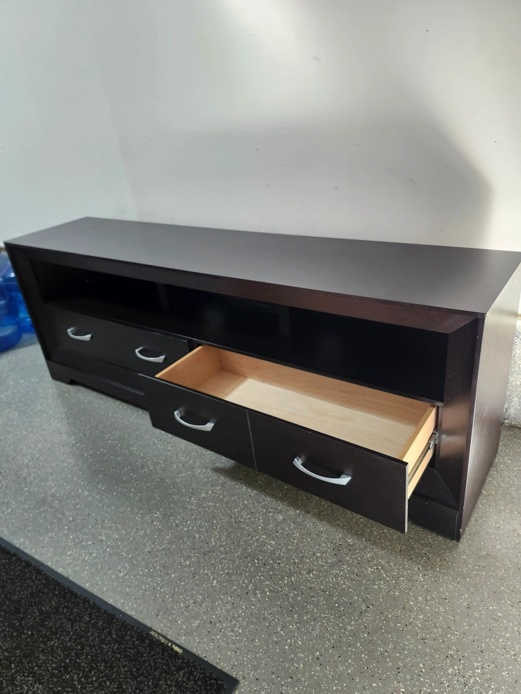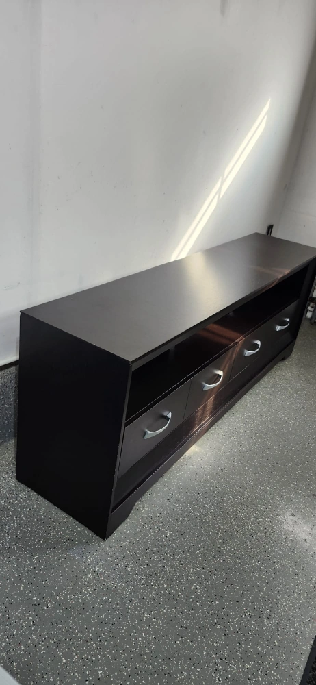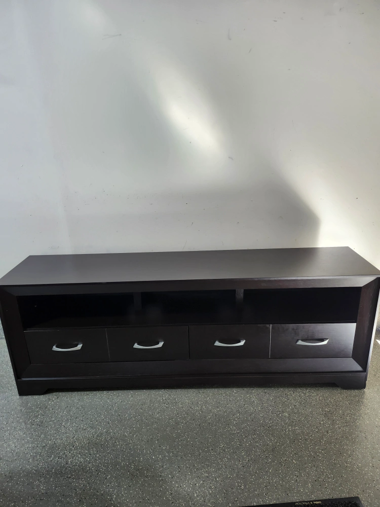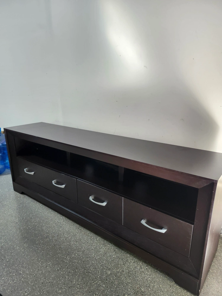 Selling a dark brown TV stand. It has a sleek design with drawers for storage. Perfect for your living room setup. Size 71 L x 16 W x 25 H Excellent condition and from a pet free environment.