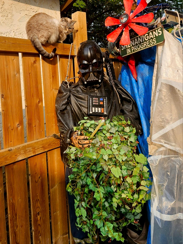 6 ft. tall Vader plant stand for the star wars fanatic who will buy anything star wars related indoor/outdoor fake plant included.storm trooper kitty not included. May the 4th be with you!!!
