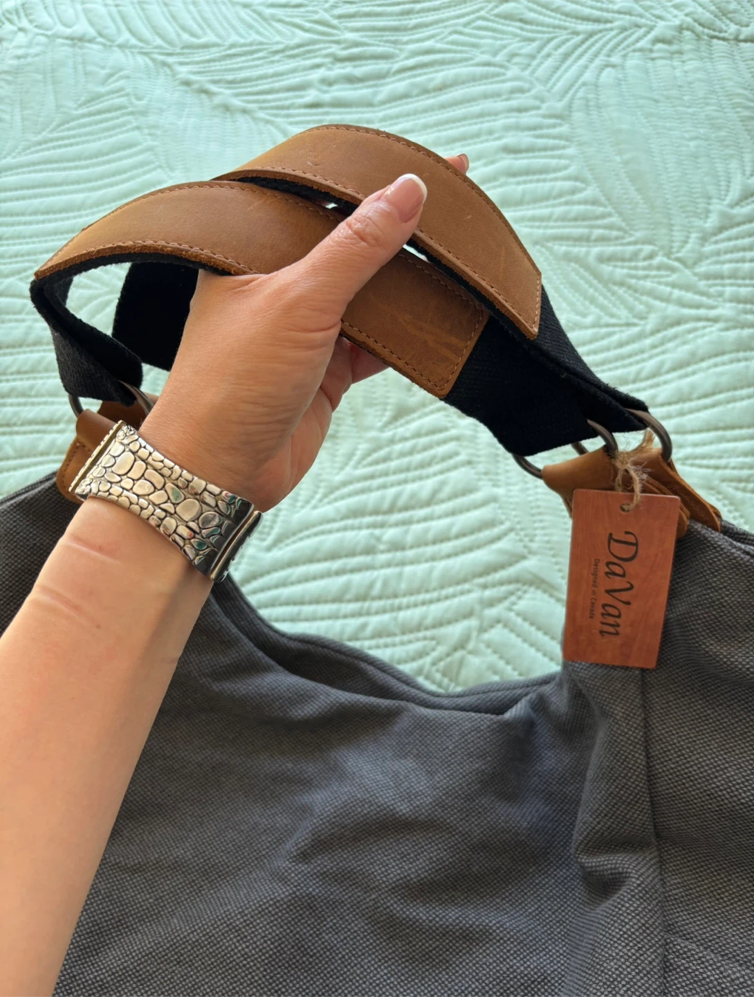 DaVan Cotton Linen/leather oversized bag, water repellent!