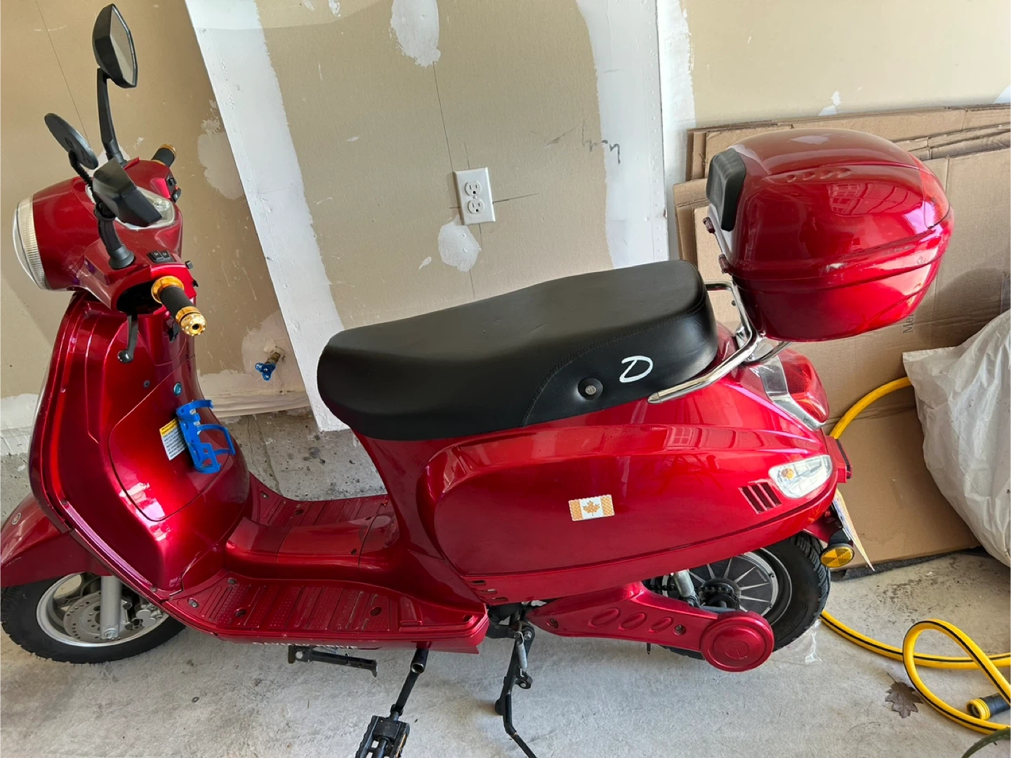 Selling a red Daymak e-bike. It's in good condition and ready for a new owner! Perfect for getting around town.