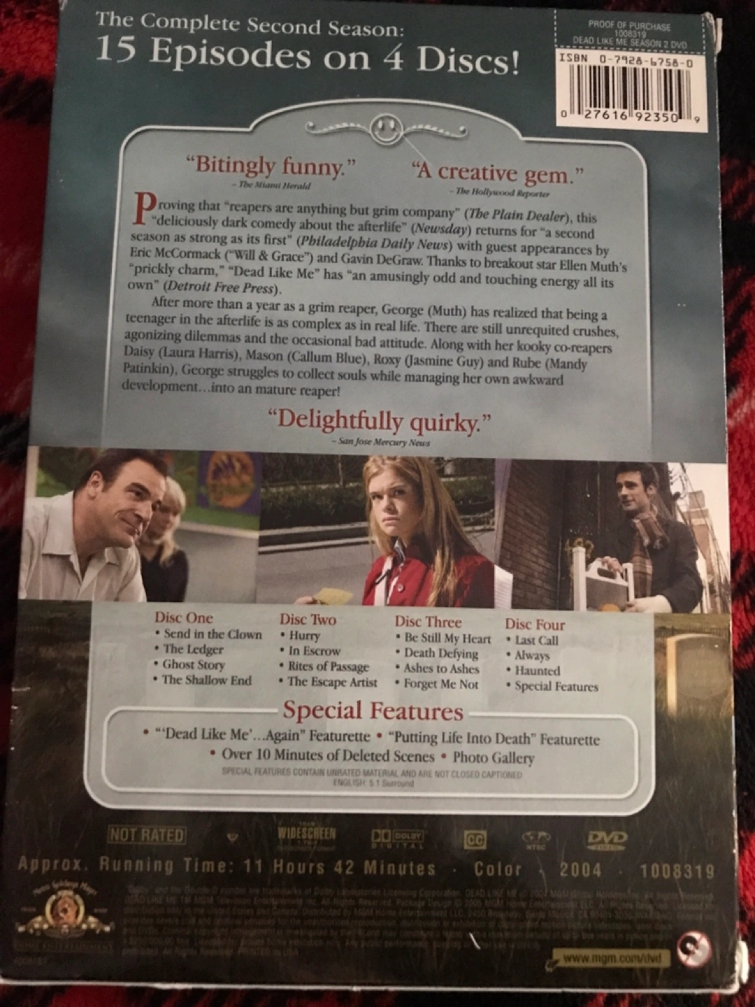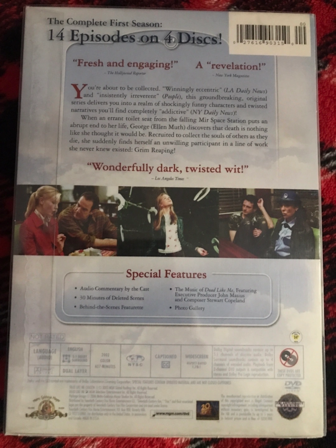 Selling both seasons of the 'Dead Like Me' DVD box sets! This series is about life after life. - The Complete First Season: 14 Episodes on 4 Discs - The Complete Second Season: 15 Episodes on 4 Discs