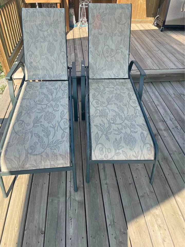 Two mesh fabric loungers And another lounger that needs a cushion All for $50 Pick up in Chestermere