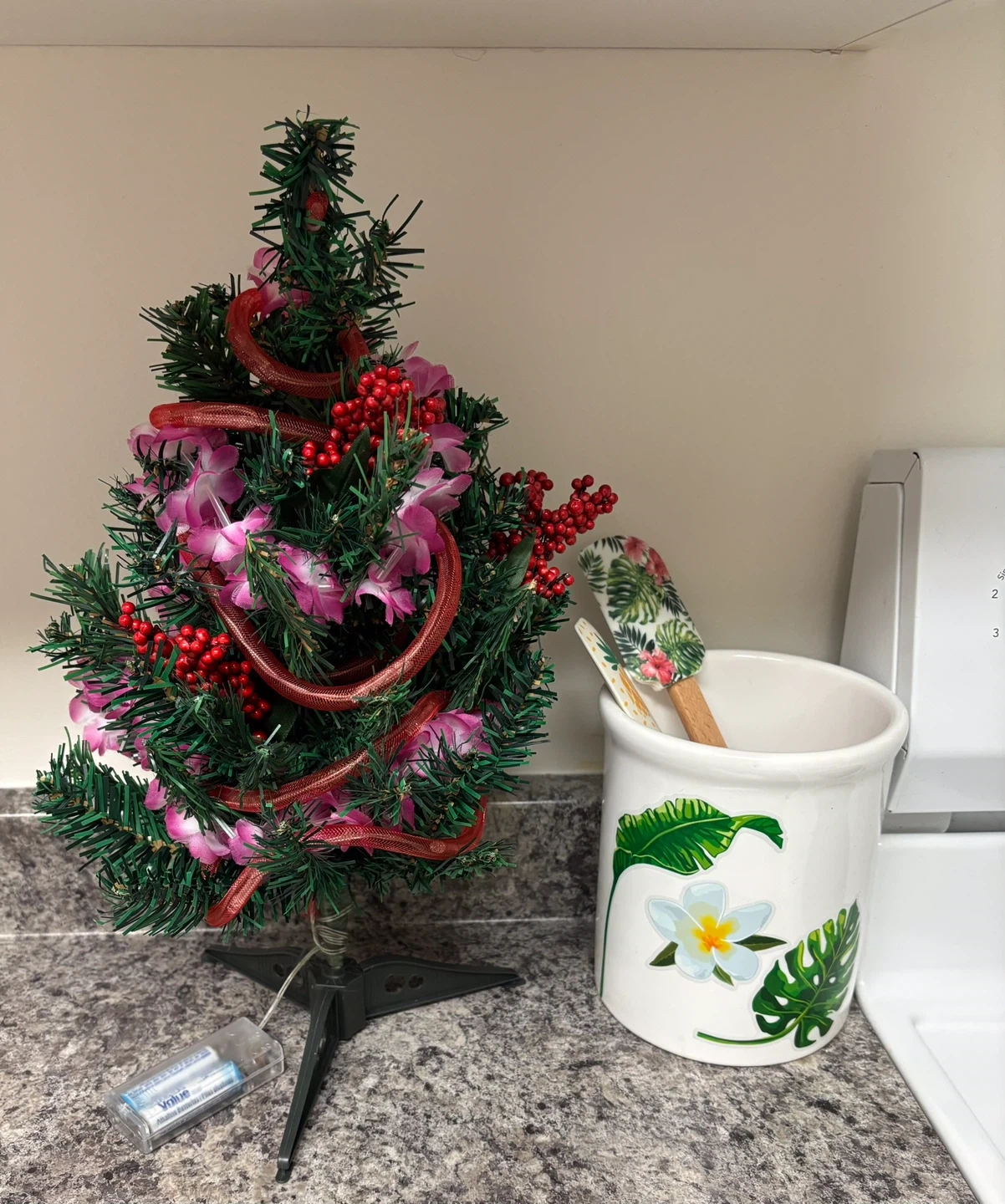 A cute little Christmas tree all decked out with lights and decorations! Perfect for adding a festive touch to a small space or as a charming addition to your holiday decor. Needs 2 AA batteries, not included Info in last photo $10.00 exact cash only As is, must go now