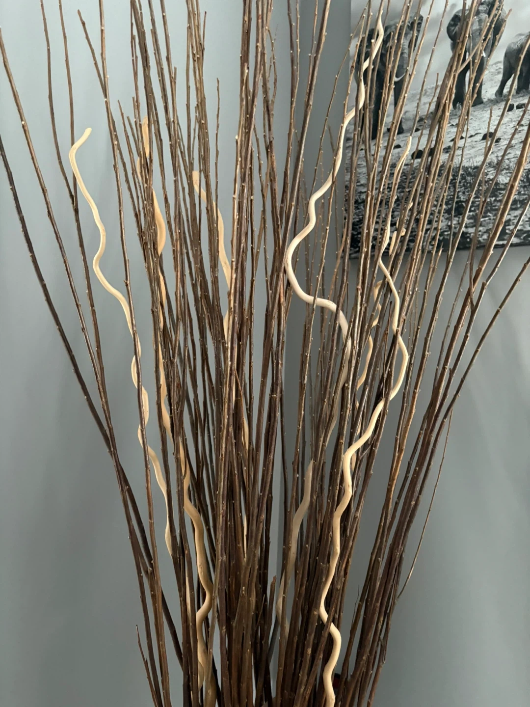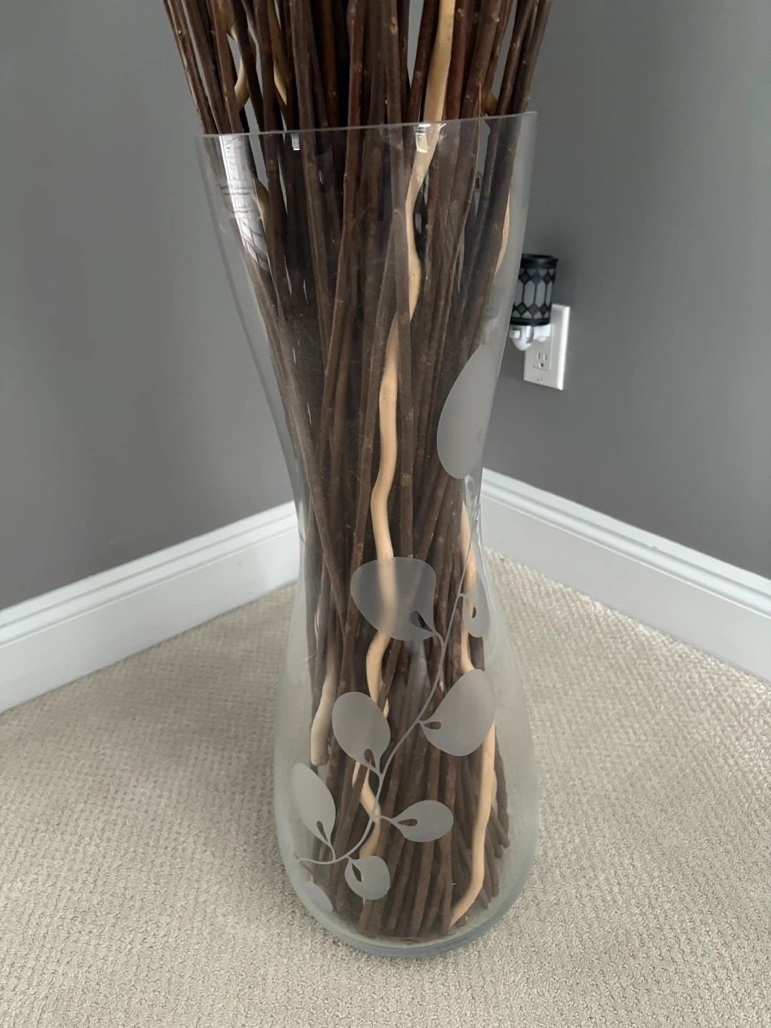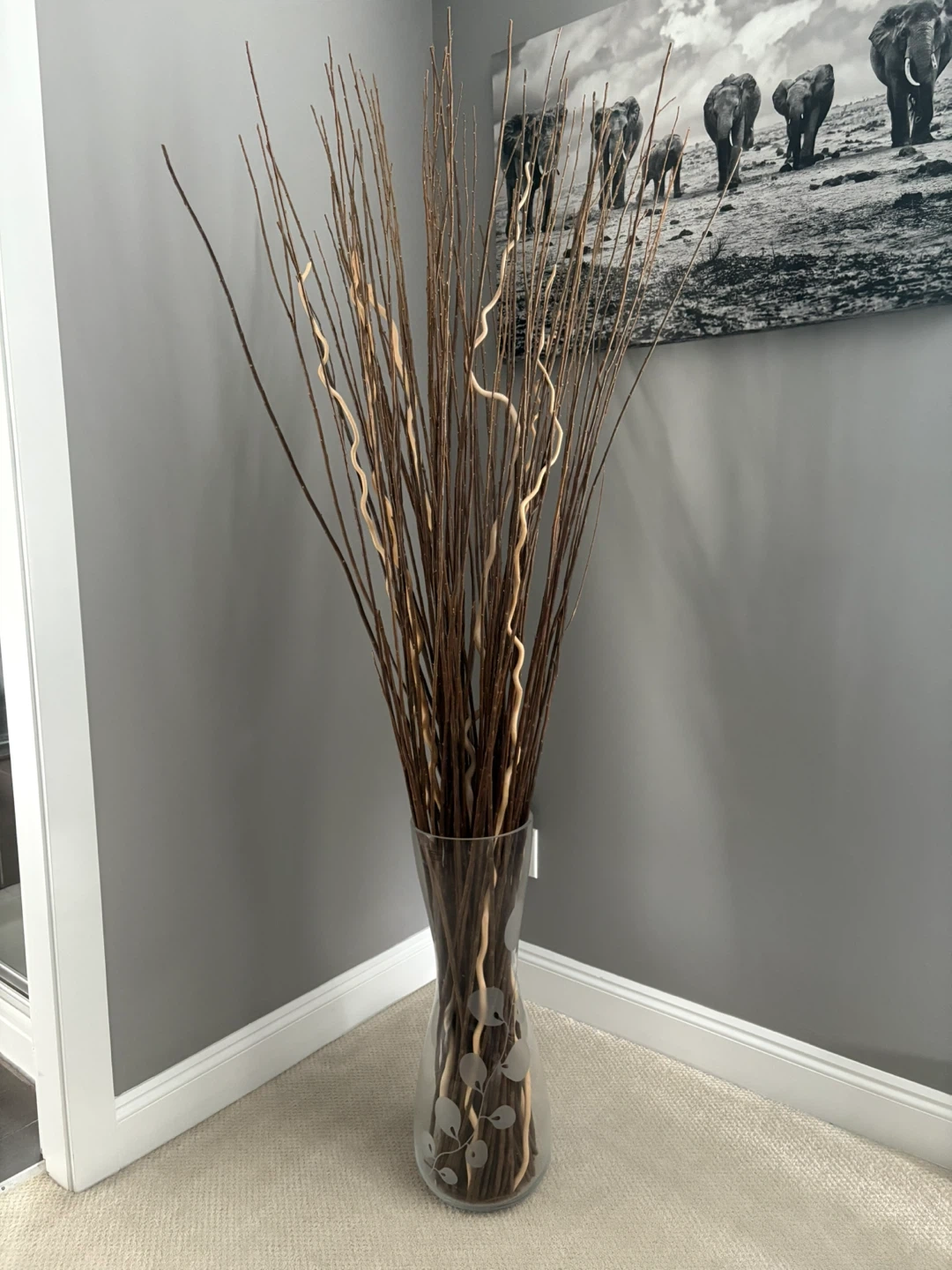 Add a touch of nature to your home with these decorative branches displayed in a glass vase! Perfect for adding some height and texture to any room. The vase features a delicate leaf design, complementing the natural look of the branches. It's a simple way to elevate your decor