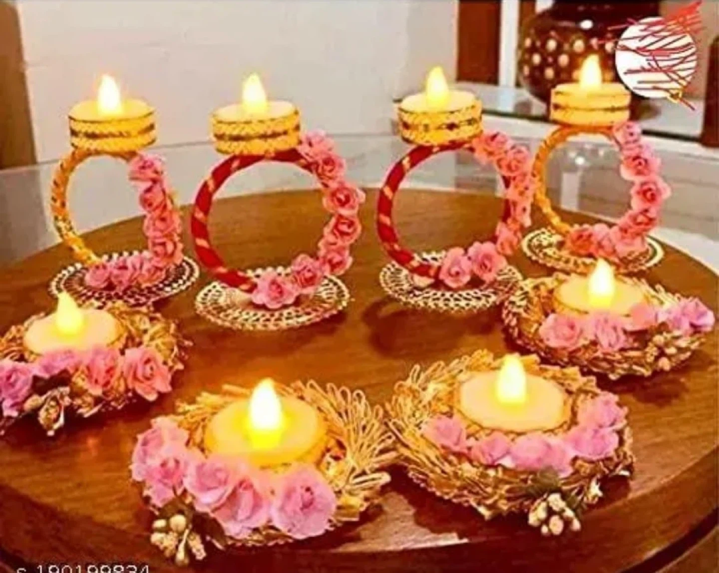 These decorative candle holders are perfect for adding a touch of warmth and charm to any space! They feature delicate floral accents and a cozy, inviting glow. Ideal for creating a relaxing ambiance in your home $4 each $25 for set of 8