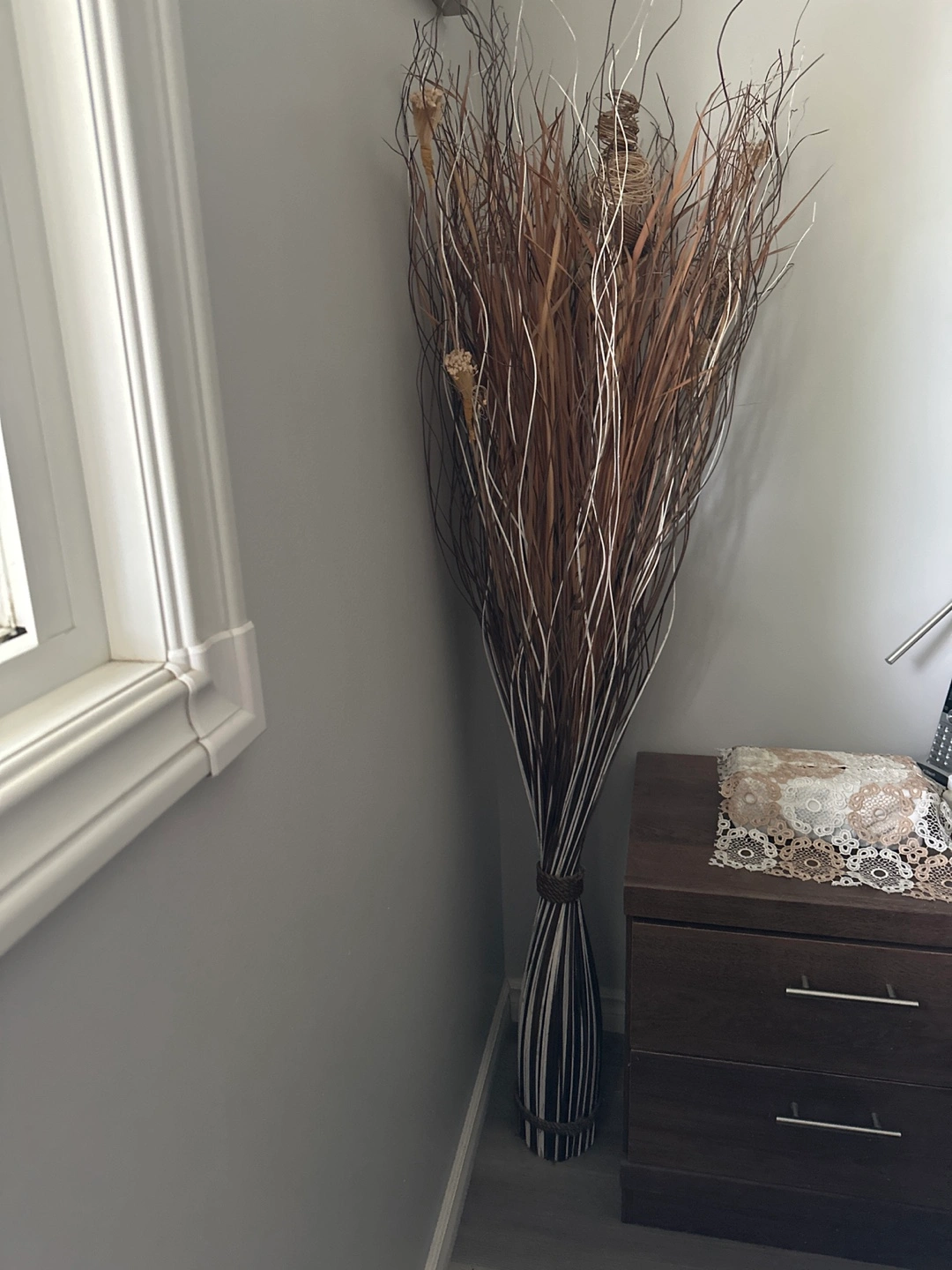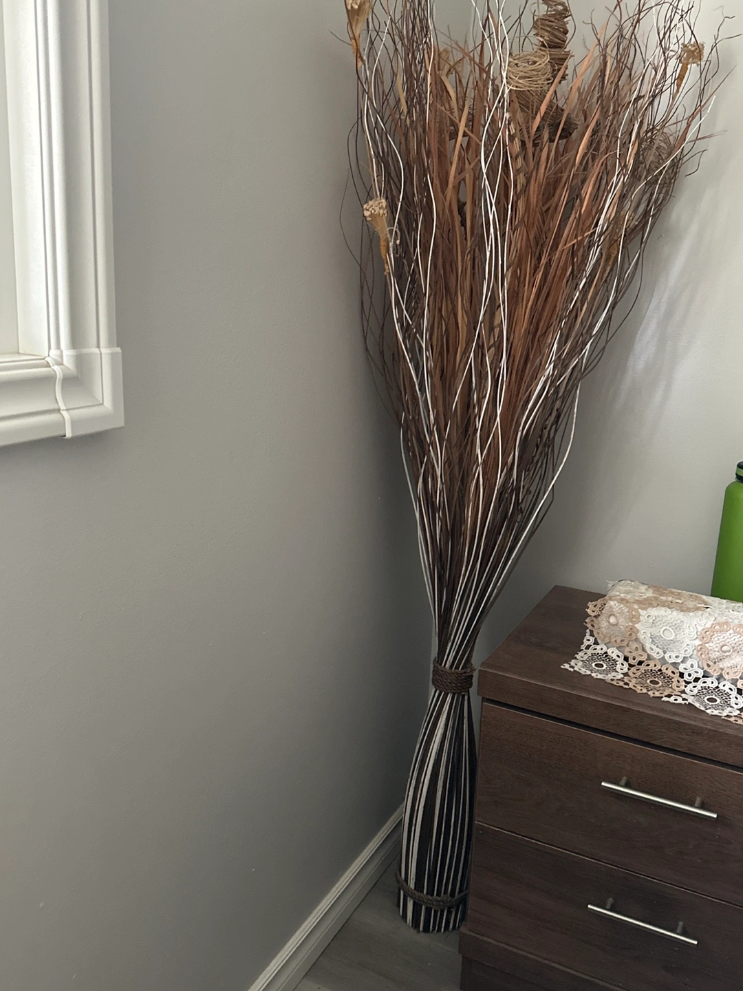 Selling a decorative dried branch arrangement. It's in great shape and would look lovely in any room. Perfect for adding a touch of nature to your home decor!