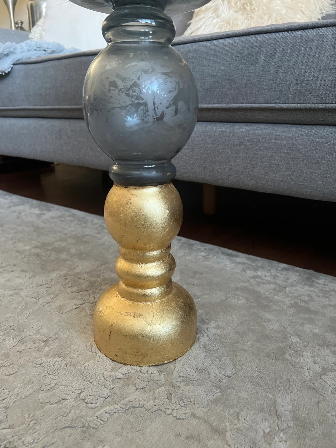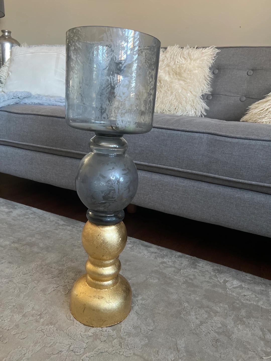 Add a touch of elegance to your home with this unique candle holder! It features a stylish combination of gold and grey, making it a versatile piece for any room. The design is eye-catching and will surely enhance your decor