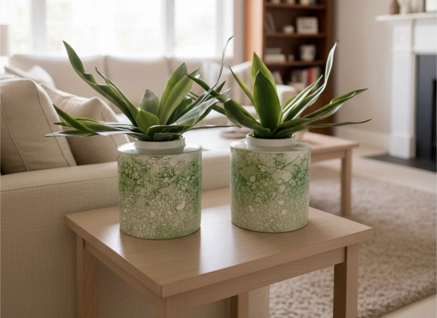 Add a touch of greenery to your home with this lovely decorative plant pot! The green and white design gives it a unique and stylish look. Perfect for small plants or succulents to brighten up any space