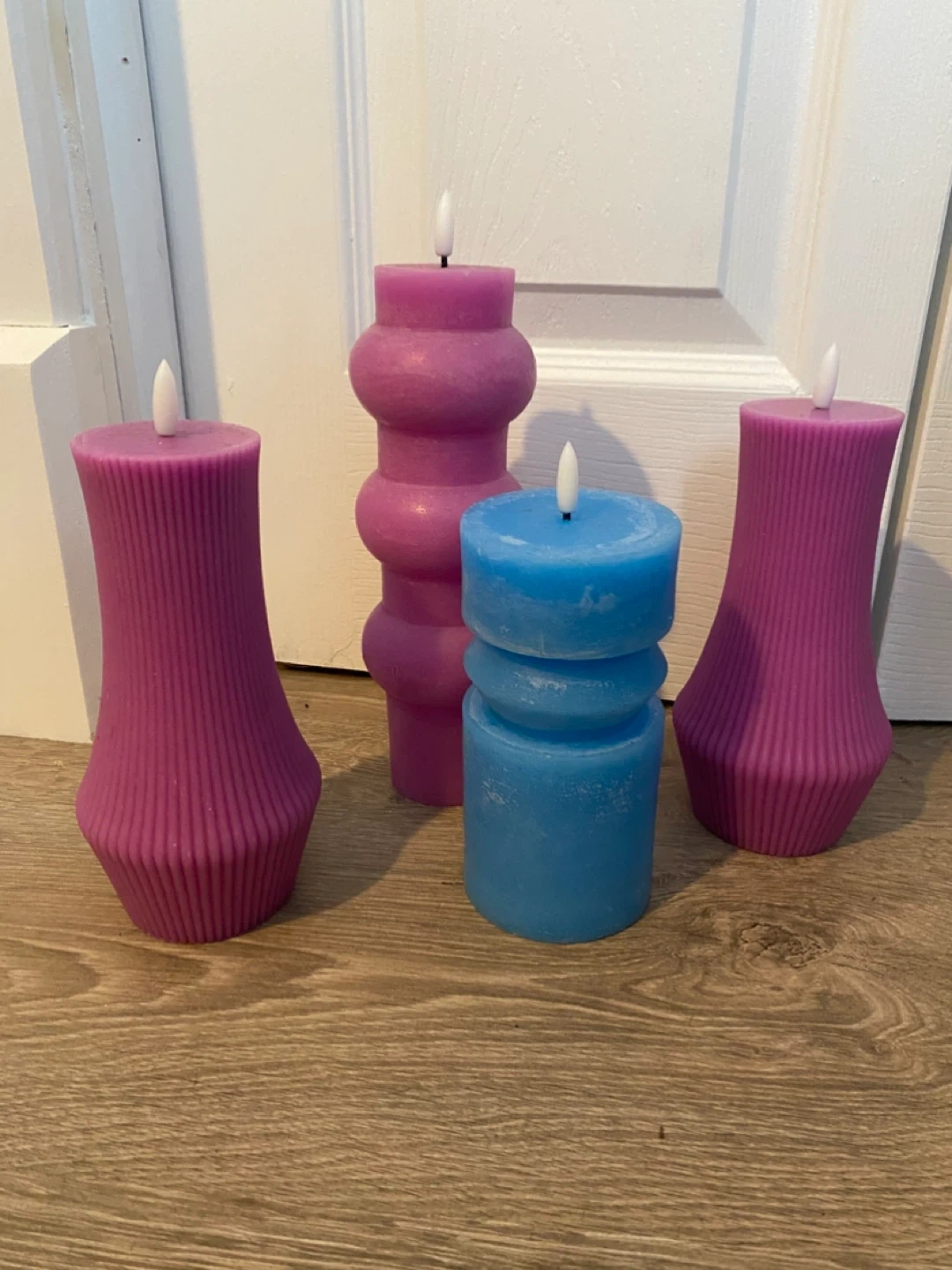 4 wax candles that are battery operated. Take 2 AA batteries each (not included) and have on/off/timer switch on the bottom. Slight flicker when turned on. Only turned in for photos. Pick up in Madoc. $10 each. Price is firm.
