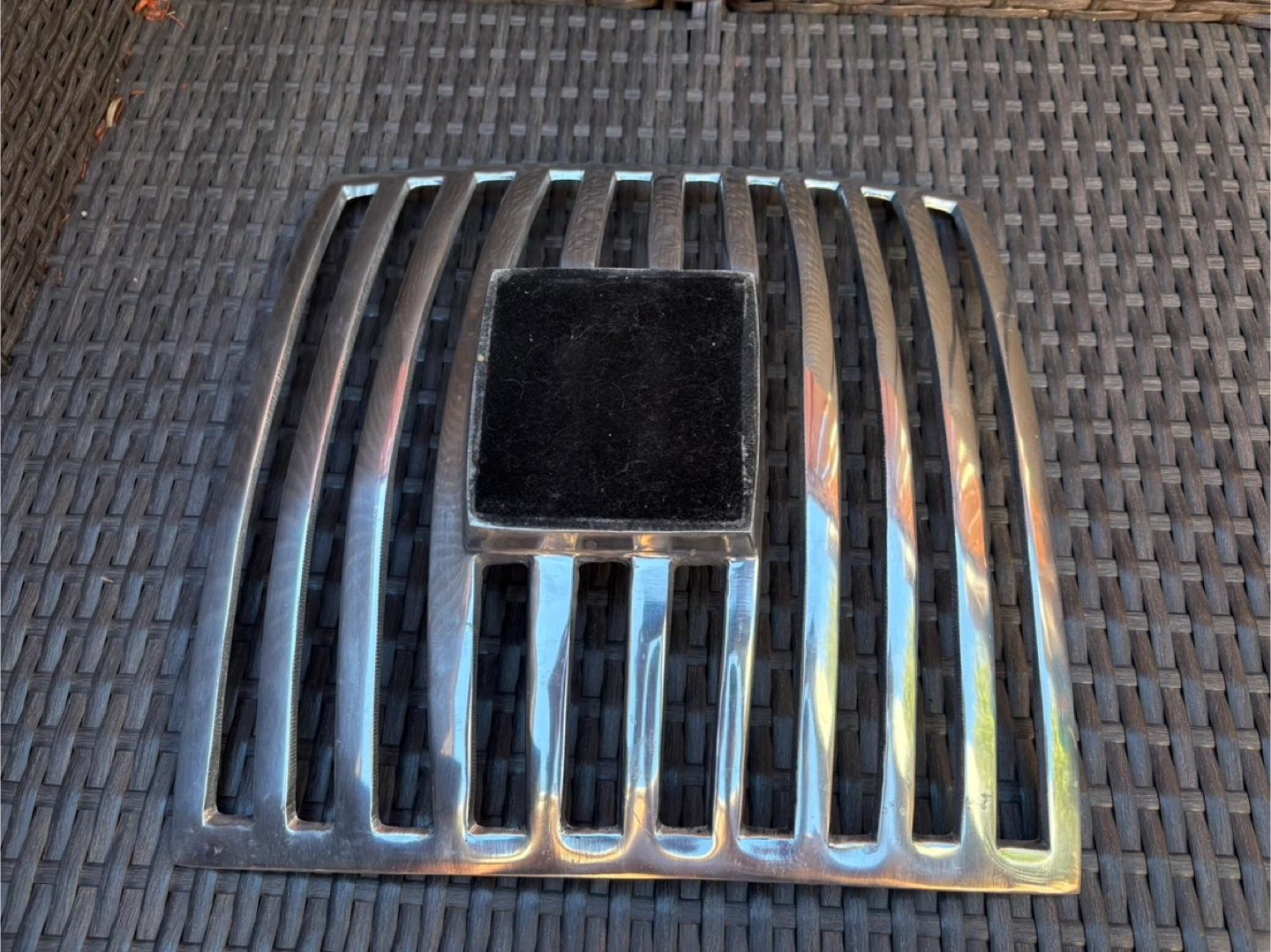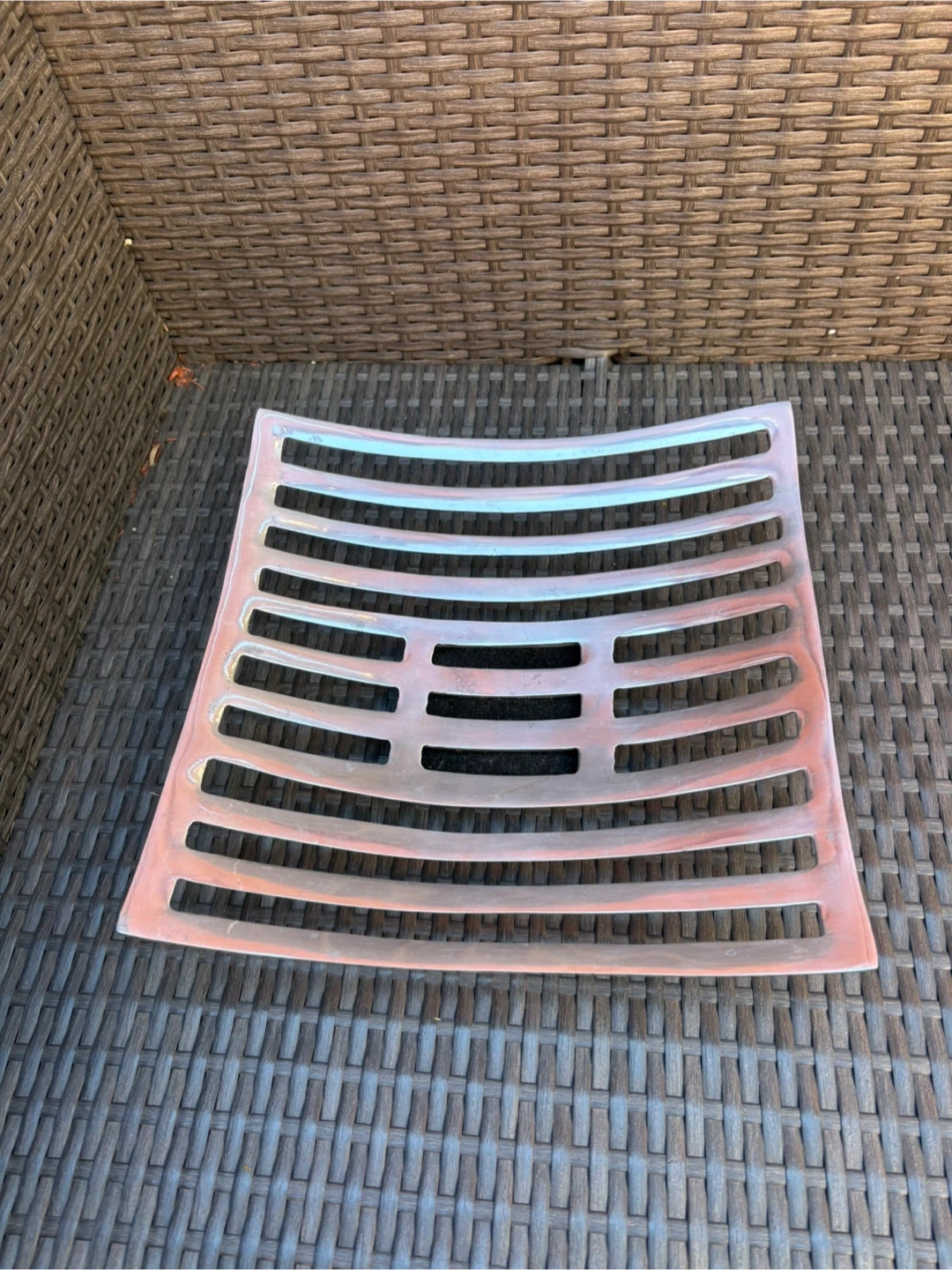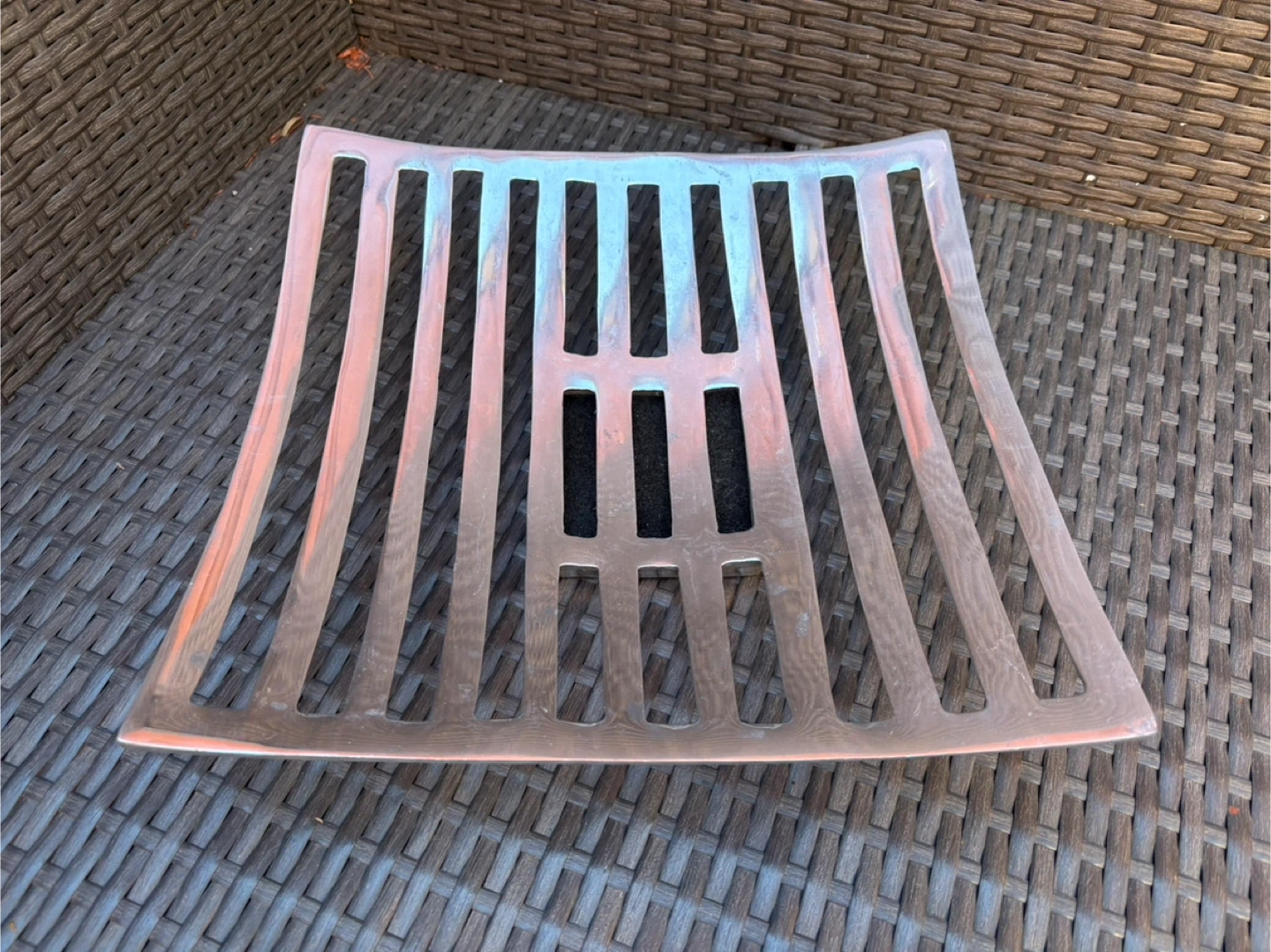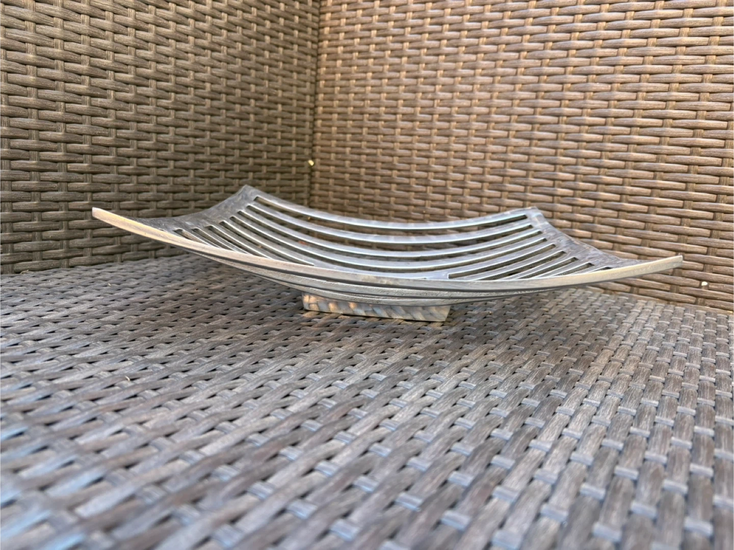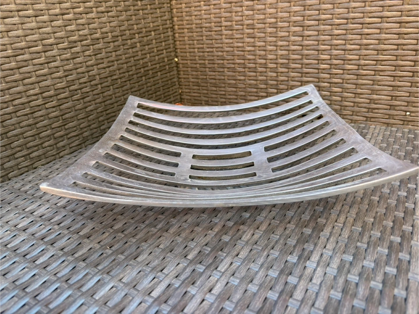 Decorative metal tray. It has a modern, geometric design that would look great as a centrepiece or on a coffee table. It's in excellent condition and ready for a new home.