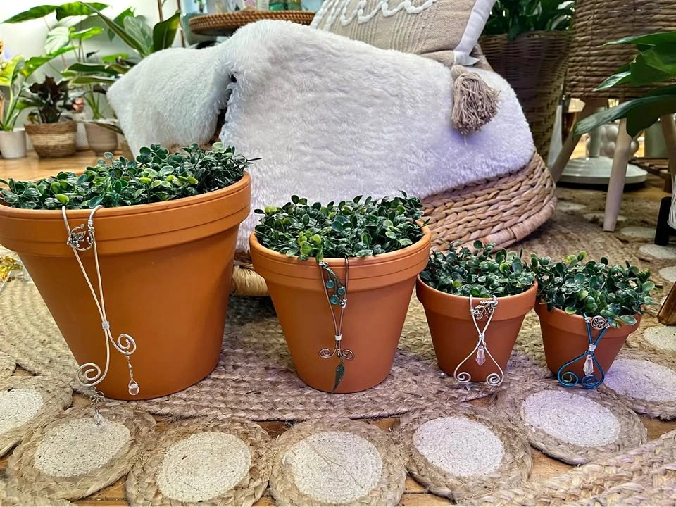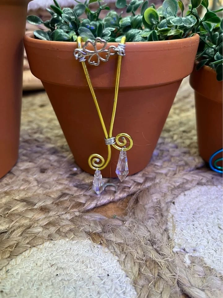 Decorative Plant Pot hangers in different sizes, colours and charms Large:$6 (for pots 8”- 10”) Medium:$5 (for pots 6”- 8”) Small:$4 (for pots 4”- 6”) Extra Small:$3 (for pots 3”-4”) Can be customized, just send me a message with your preferences Pick up at The Plant Witch in Erin Ridge, St.Albert Check out my other listings or go to my website theplantwitch.ca to view all my listings for different potted plant varieties, suncatchers, propagation jars, decorative pot stakes and more! 🪴🌞