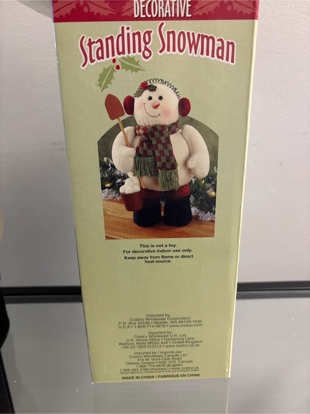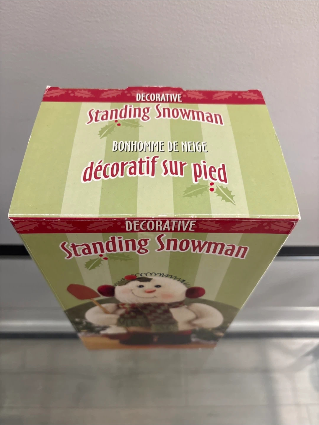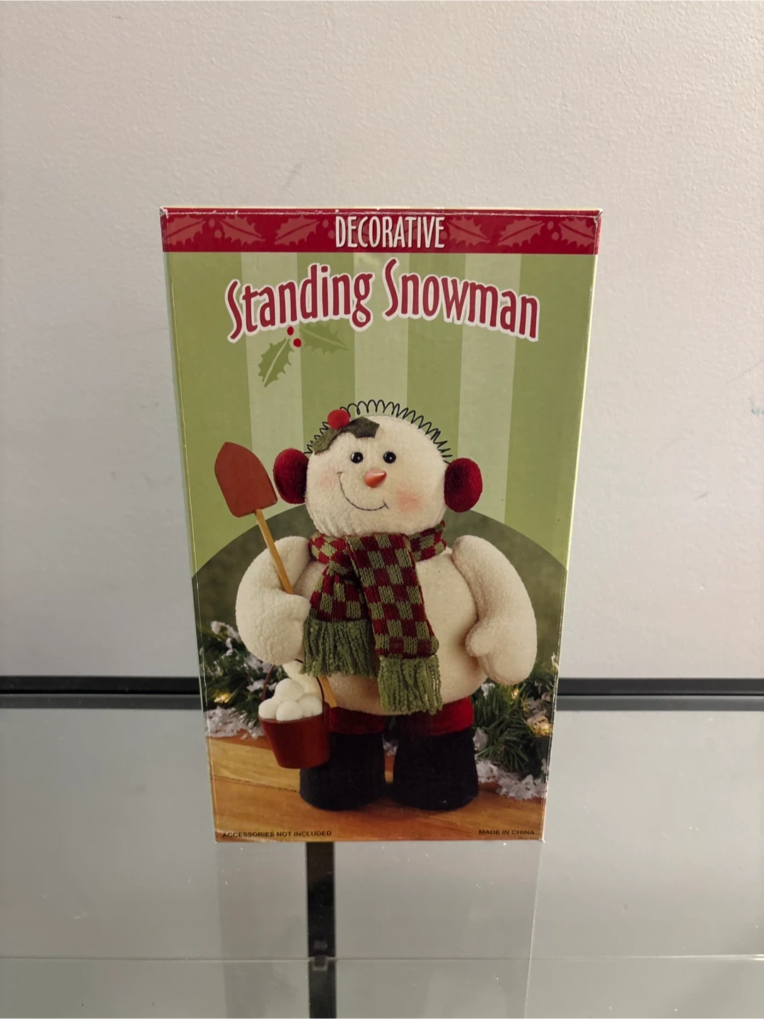 Selling a decorative standing snowman. It comes with its original box. The snowman is in great condition and ready to bring some cheer to your home!