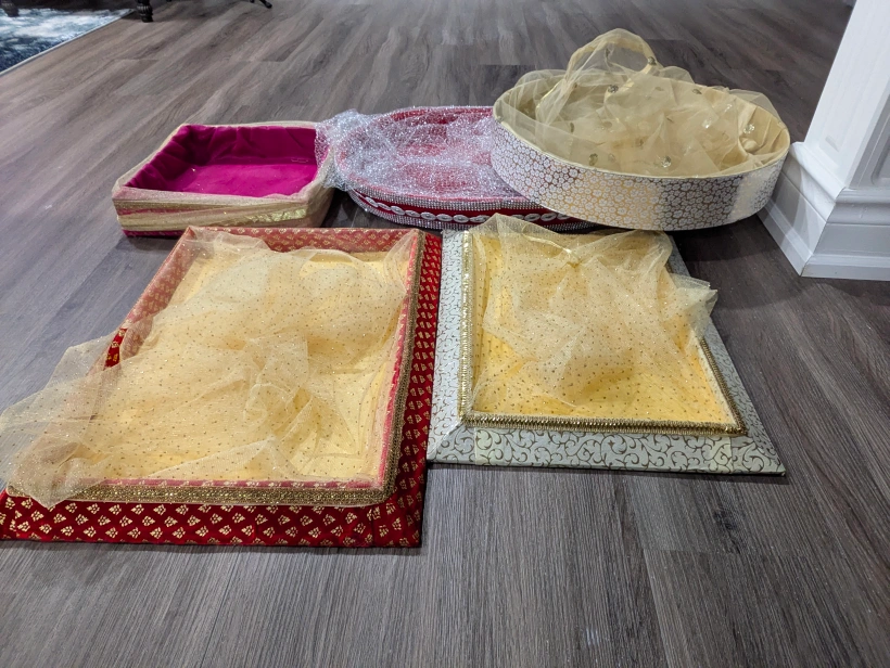 Selling a set of decorative trays that can be used for weddings, birthdays etc! They're in perfect condition and shape