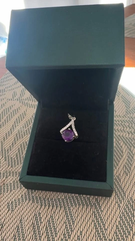 Elegant silver pendant with a vibrant amethyst gemstone in a sterling silver setting accented with sparkling stones. Perfect for adding sophistication to everyday wear or gifting someone special đ ⨠Genuine amethyst ⨠925 silver ⨠Excellent condition â unworn ⨠Great gift idea Instagram - SunFire Jewellers