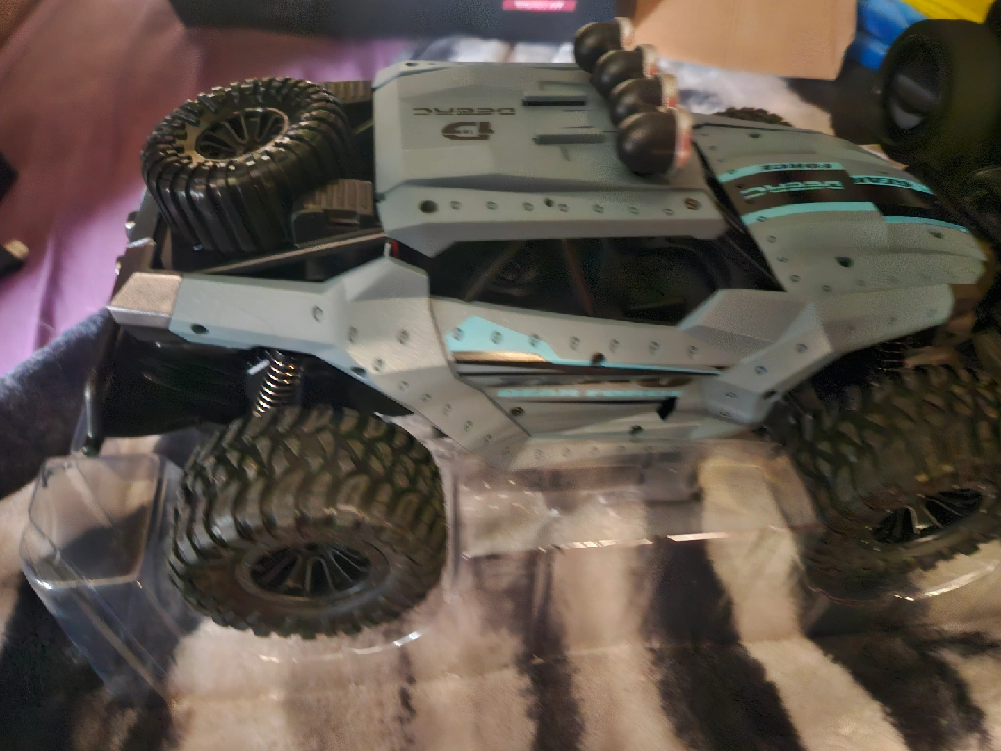 Selling a DEERC DE36W Off-Road Vehicle! It's a 1:16 scale, high-speed RC electric vehicle. It features a 1080P camera, full function, shock absorbers, and is app controlled. It also has monster tires!