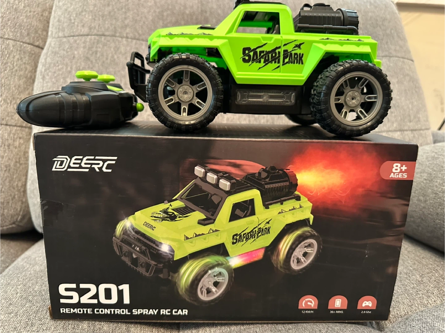 Selling a brand new DEERC S201 Remote Control Spray RC Car! It's still in its original box and ready for some fun. Features include: - Remote control - Spray function - Suitable for ages 8+
