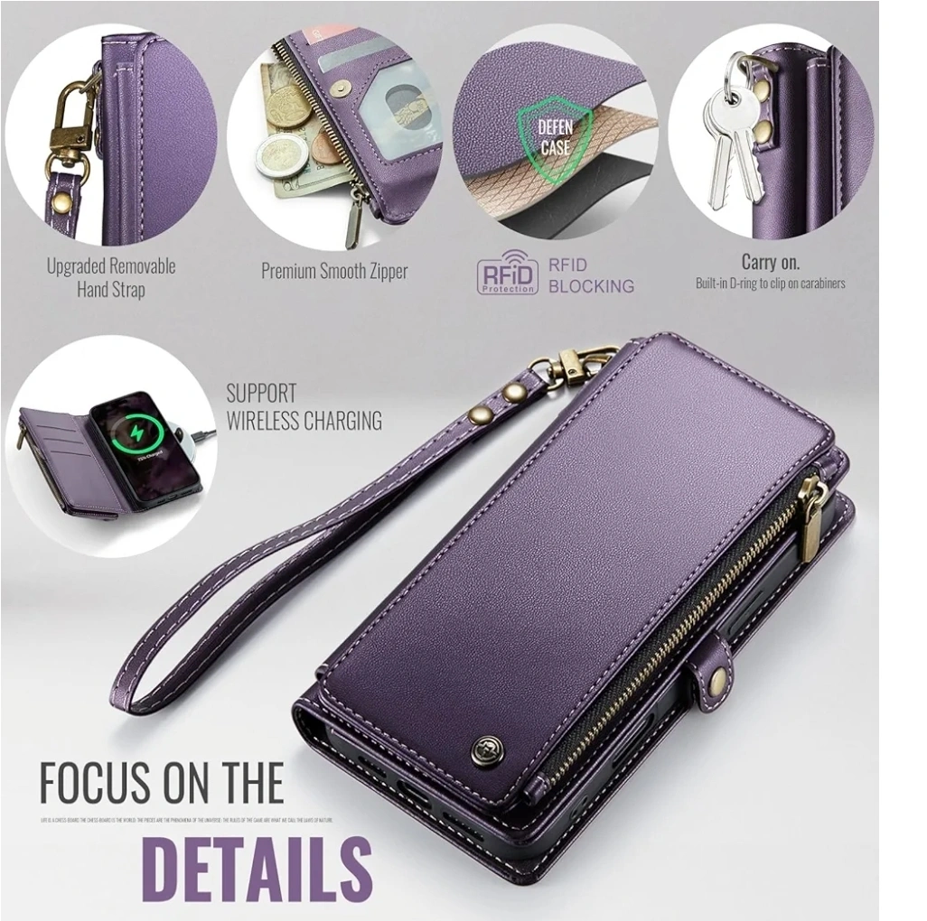 This is a Defencase wallet case in a lovely purple colour. It features an upgraded removable hand strap and a premium smooth zipper. It also has RFID blocking and a built-in D-ring to clip on carabiners. It also supports wireless charging. Compatible devices: iPhone 16 📲 Pick it up Niagara Falls