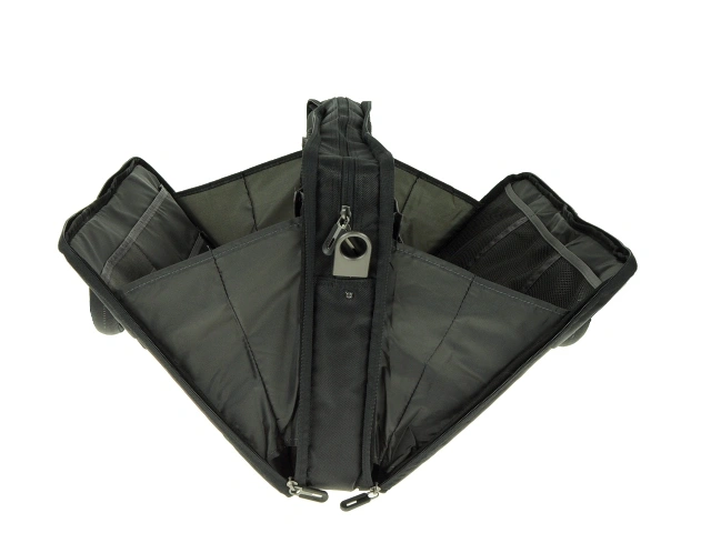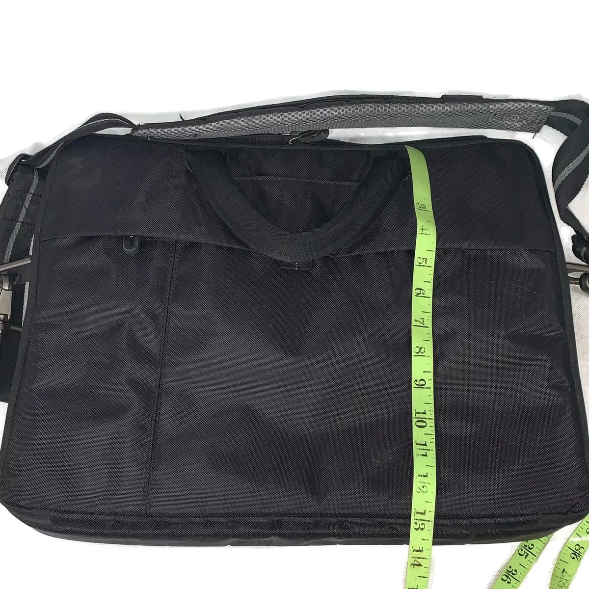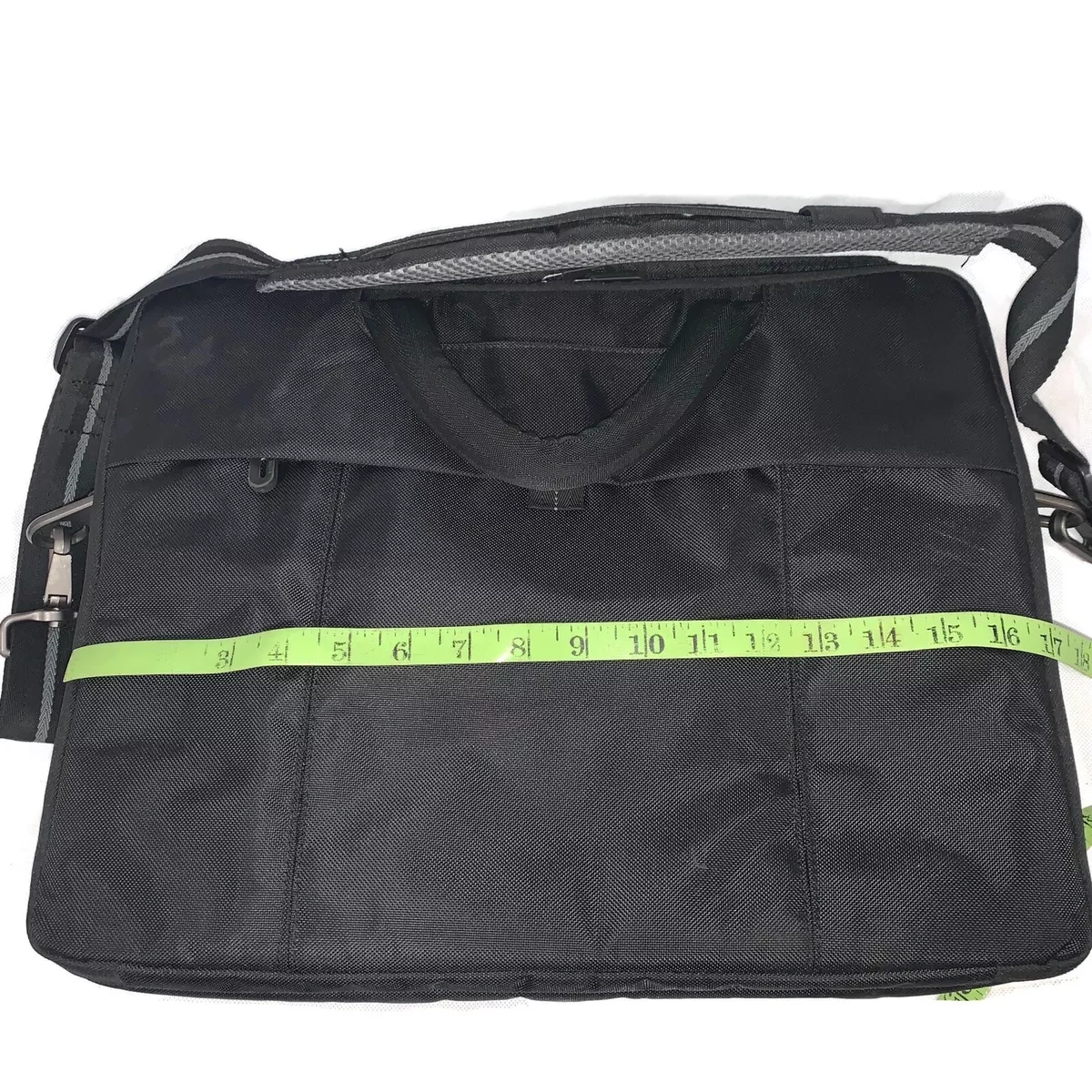 Black laptop bag with a shoulder strap and handle. Multiple pockets inside. never used.