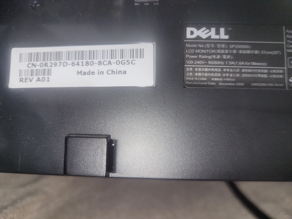 Selling a Dell SP2009wc LCD monitor. It's in good working condition and ready for a new home. It has a standard power rating of 100-240V ~ 50/60Hz 1.5A. Manufactured in December 2008