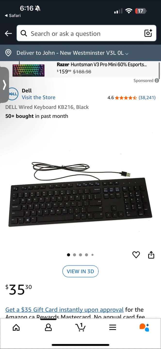 Selling a Dell Wired Keyboard KB216 in black. It's in great condition and ready for a new home! Originally bought for $35.30 plus tax
